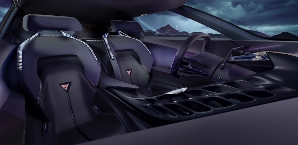 ดีไซน์ภายใน ใช้วัสดุที่ยั่งยืน ทำจากไม้ไผ่ที่ย่อยสลายได้ทางชีวภาพ 90% เพิ่มความโดดเด่นด้วยเส้นแสงที่ปรับสีได้ ระหว่างสีน้ำเงินเข้มเป็นสีม่วงแดงและม่วงสะท้อนแสง ทำให้ภายในห้องโดยสารมีชีวิตชีวา ส่วนเบาะนั่งและพวงมาลัย ยังคงให้อารมณ์ของรถสปอร์ต