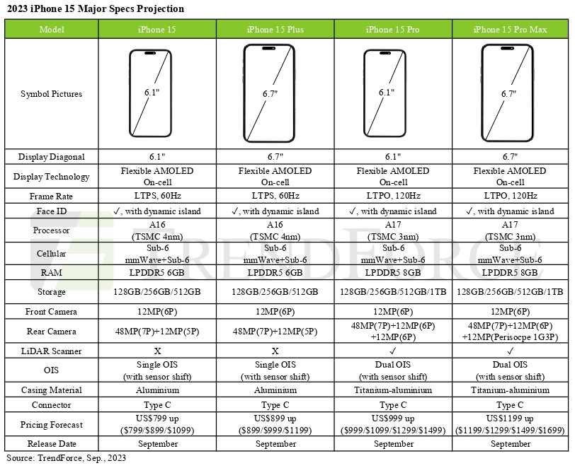 ข่าวไม่สู้ดีนักก็คือ พื้นที่เก็บข้อมูล ที่เคยถูกลือว่าจะได้รับการขยายถึง 2TB ท้ายที่สุดอาจจบลงที่ 1TB หมายความว่า iPhone 15 Pro และ iPhone 15 Pro Max ยังคงมีตัวเลือกเหมือนเดิมอีกครั้ง ได้แก่ 128GB, 256GB, 512GB และ 1TB