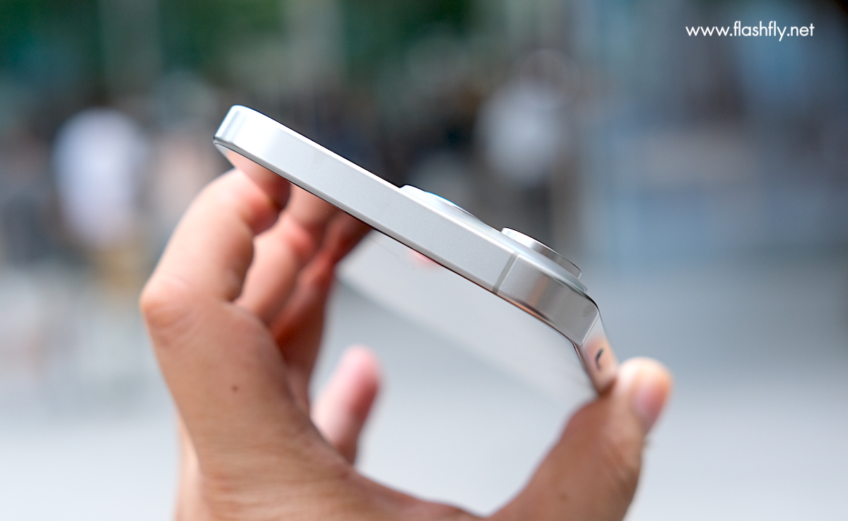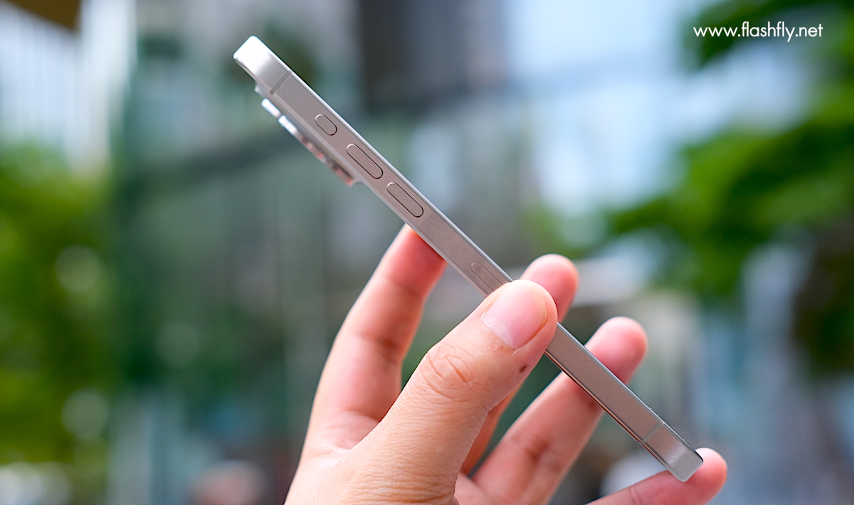 ขอบด้านข้างมีความบาง 8.25 มิลลิเมตร ไม่มีปุ่มสวิตช์ปิด/เปิดเสียงอีกต่อไปแล้ว แต่เปลี่ยนมาใช้ปุ่ม Action ที่สามารถตั้งค่าให้เปิดแอปหรือฟังก์ชันที่ต้องการได้ (จากทั้งหมด 9 ฟังก์ชัน) ถัดลงมาเป็นปุ่มเพิ่มระดับเสียง ปุ่มลดระดับเสียง และช่องใส่ซิมการ์ด รองรับ Nano-SIM หรือเปิดใช้งานเครือข่ายมือถือผ่าน eSIM ก็ได้เช่นกัน
