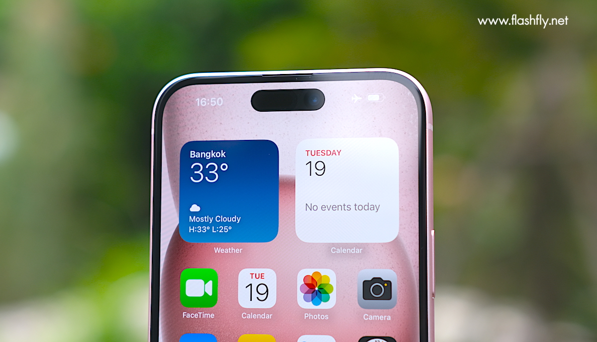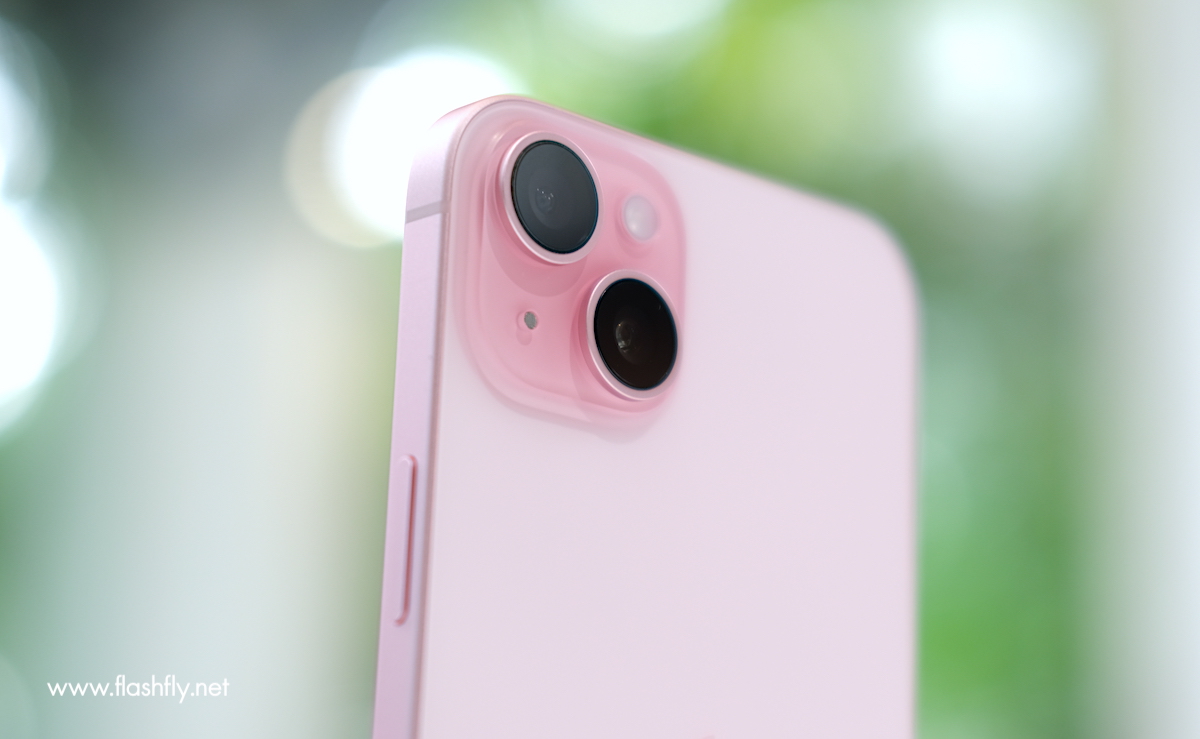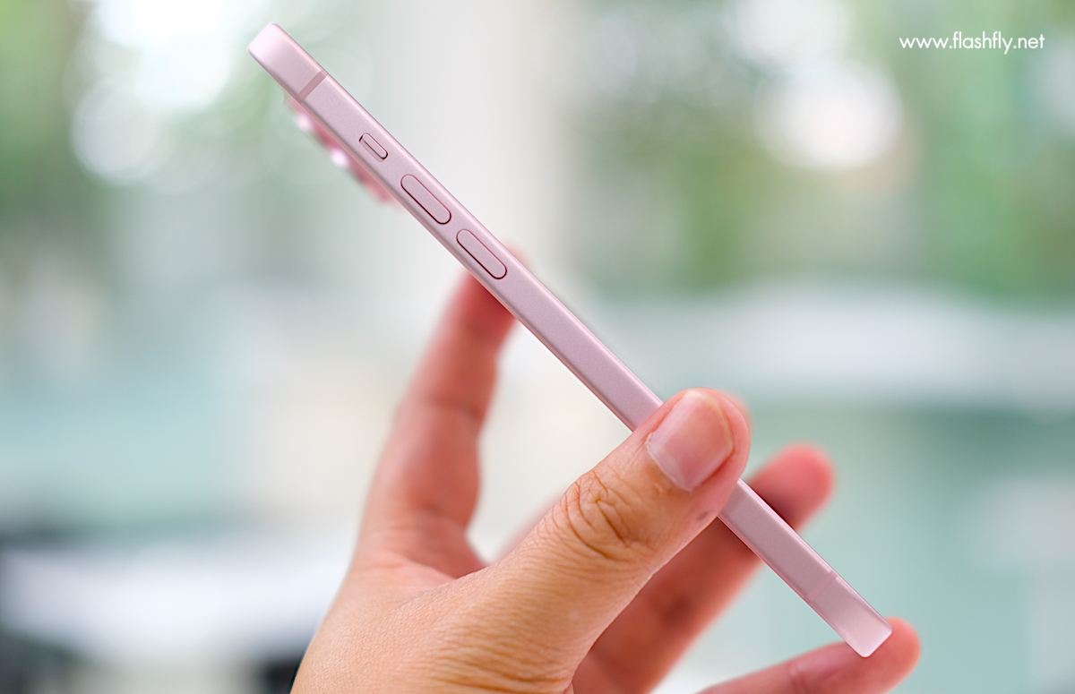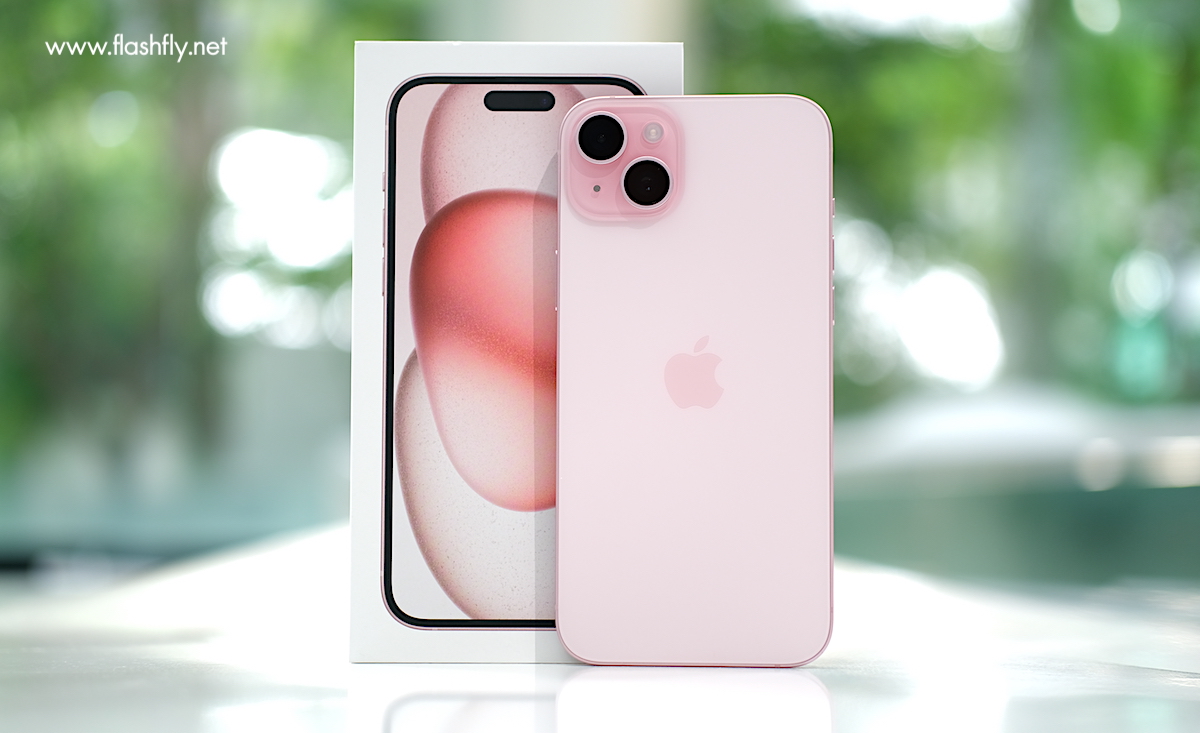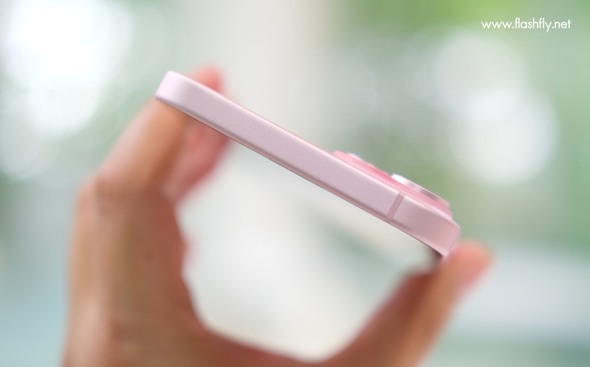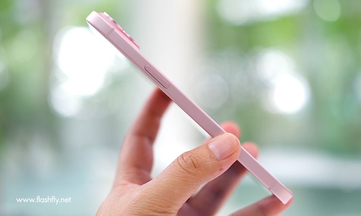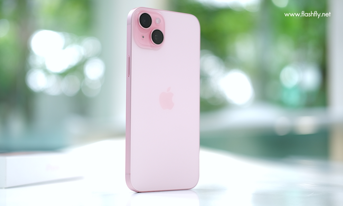 ตัวเครื่อง iPhone 15 Plus ใช้วัสดุอะลูมิเนียมเกรดเดียวกับที่ใช้ในอุตสาหกรรมอวกาศ มีให้เลือก 5 สี ได้แก่ สีเหลือง, สีเขียว, สีฟ้า, สีดำ และ สีชมพู ซึ่งเป็นสีที่ทีมงาน @Flashfly ได้รับมารีวิว
