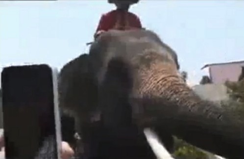 เวลานักท่องเที่ยวต่างชาติมาเที่ยวประเทศไทย สิ่งหนึ่งที่พวกเขาชื่นชอบและต้องขอถ่ายรูปคู่ คงหนีไม่พ้นสัตว์คู่บ้านคู่เมืองอย่าง “ช้าง” เช่นเดียวกับนักท่องเที่ยวสาวจากประเทศจีน 2 คน ที่ถ่ายรูปด้วยโทรศัพท์มือถือไอโฟนขณะกำลังให้อาหารช้างกันอย่างสนุกสนาน แต่ช้างคงแยกไม่ออกอันไหนโทรศัพท์อันไหนกล้วย ว่าแล้วก็เลยใช้งวงหยิบไอโฟนไปจากมือหญิงสาวเอาเข้าปากไปอย่างหน้าตาเฉย ทำเอาสองสาวโวยวายกันยกใหญ่ซึ่งควาญช้างก็ช่วยอะไรไม่ได้