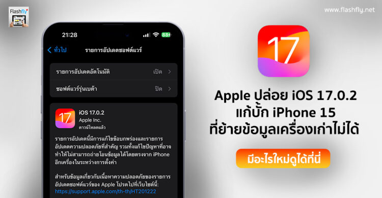 วันนี้เป็นวันแรกที่ Apple วางจำหน่าย iPhone 15 พร้อมกันในหลายประเทศทั่วโลกรวมทั้งประเทศไทย ซึ่งแน่นอนว่ามีการเปิดใช้งาน iPhone เครื่องใหม่จำนวนมาก ซึ่งตอนนี้เกิดปัญหากับผู้ใช้งานบางรายที่ไม่สามารถย้ายข้อมูลโดยตรงจากเครื่องเก่าไปยังเครื่องใหม่ได้สำเร็จ ขึ้นแต่หน้าจอโลโก้ Apple ค้าง กลายเป็นปัญหาหนักใจของใครหลายคนทันที แต่ล่าสุดทาง Apple ก็ได้ปล่อย iOS 17.0.2 ออกมาสำหรับ iPhone 15 ทุกรุ่น และ iOS 17.0.1 สำหรับ iPhone รุ่นเก่า ออกมาอัปเดตแก้ไขปัญหาที่อาจทำให้ไม่สามารถถ่ายโอนข้อมูลได้โดยตรงจาก iPhone อีกเครื่องในระหว่างการตั้งค่า แล้ว แนะนำให้ผู้ที่เป็นเจ้าของ iPhone 15 ทุกคนทำการอัปเดทตัวเครื่องก่อนย้ายข้อมูล