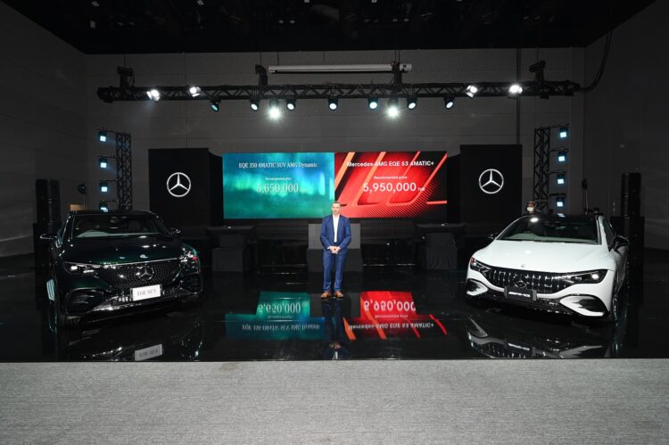 เพื่อตอกย้ำเป้าหมายในการขับเคลื่อนประเทศไทยให้เข้าสู่ยุคยานยนต์ไฟฟ้า เมอร์เซเดส-เบนซ์ ได้เปิดตัวรถยนต์พลังงานไฟฟ้า 100% ในโมเดลของ Mercedes-Benz EQE พร้อมกันถึง 2 รุ่น ได้แก่