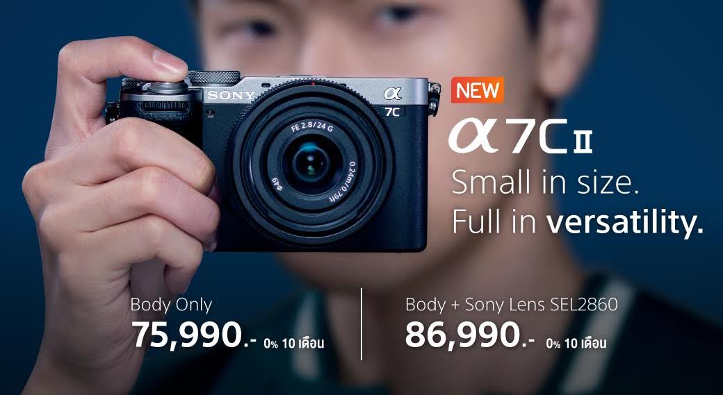 บริษัท โซนี่ ไทย จำกัด เปิดตัวกล้องฟูลเฟรมมิเรอร์เลสแบบเปลี่ยนเลนส์ได้ 2 รุ่นใหม่ล่าสุดกับ Alpha 7C II (อ่านว่า อัลฟ่า เซเว่น ซี มาร์ค ทู) และ Alpha 7CR (อ่านว่า อัลฟ่า เซเว่น ซี อาร์) โดยกล้อง Alpha 7C II เป็นกล้องฟูลเฟรมมิเรอร์เลสในตระกูล “Alpha 7C Series” มาพร้อมเซ็นเซอร์รับภาพแบบ Full Frame Black-illuminated Exmor R® CMOS ที่มีความละเอียดประมาณ 33.0 ล้านพิกเซลใช้งานจริง ผสานฟังก์ชั่นภาพนิ่ง และวิดีโอล่าสุด รวมถึงประสิทธิภาพในการออกแบบที่กะทัดรัดและน้ำหนักเบา ด้วยขนาดที่มีความกว้าง 124 มม. สูง 71.1 มม. และ หนา 63.4 มม. และมีน้ำหนักประมาณ 514 กรัม2 นับเป็นกล้องรุ่นที่ 2 ของกล้องในตระกูล Alpha 7C Series ที่โดดเด่นด้วยประสิทธิภาพ เพียบพร้อมด้วยคุณสมบัติที่หลากหลาย ในขนาดกะทัดรัด เหมาะสำหรับการถ่ายภาพในทุกรูปแบบ ควงคู่มากับกล้อง Alpha 7CR ซึ่งเป็นกล้องฟูลเฟรมแบบเปลี่ยนเลนส์ได้ในขนาดกะทัดรัด โดดเด่นด้วยความละเอียดสูงและการไล่ระดับสีที่สมบูรณ์แบบของเซ็นเซอร์รับภาพ มีความละเอียดประมาณ 61.0 ล้านพิกเซลใช้งานจริง ซึ่งเป็นเซ็นเซอร์แบบเดียวกับที่พบใน Alpha 7R V และอยู่ในกล้องขนาดกะทัดรัด และตัวกล้องมีน้ำหนักเบา โดยมีขนาดและน้ำหนักพอๆกับ Alpha 7C II2 ประมาณ 515 กรัม นอกเหนือจากการถ่ายภาพในชีวิตประจำวันแล้ว ตัวกล้องยังรองรับการถ่ายภาพคุณภาพสูงได้อย่างง่ายดายด้วยการตั้งค่าที่หลากหลาย เช่น การถ่ายภาพบุคคล สัตว์ป่า และทิวทัศน์ นับเป็นการผสมผสานระหว่างการถ่ายภาพที่มีความละเอียดสูง ความคล่องตัวสูง และมีน้ำหนักเบาได้อย่างดีเยี่ยมอีกด้วย