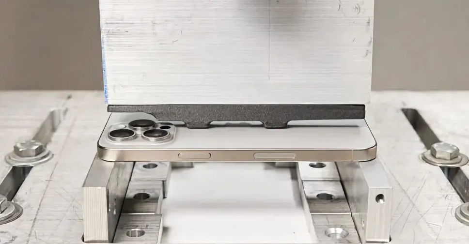 Consumer Reports นำ iPhone 15 Pro Max มาทดสอบกับเครื่องวัดแรงบีบอัดด้วยแรงกด 100 ปอนด์ จนทำให้ตัวเครื่องโค้งงอ แต่ก็ไม่พบว่ากระจกด้านหลังจะแตกร้าว และตัวเครื่องก็สามารถคืนสภาพเดิมได้ หลังจากการทดสอบเสร็จสิ้น
