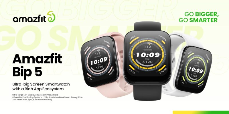 Amazfit Bip 5 ราคาเริ่มต้นที่ 2,490 บาท มีวางจำหน่ายแล้วที่ Shopee / Lazada หรือ TikTok และ Dotlife / Banana / JIB / PowerBuy / B2S / BeTrend / IT City / N-Smart / Morefun และร้านค้าโซนสินค้าเทคโนโลยีในห้างสรรพสินค้าชั้นนำทั่วไป