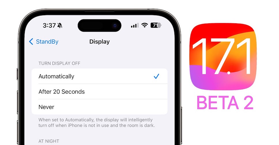 โหมด StandBy ได้รับตัวเลือกการตั้งค่าใหม่ Display ซึ่งพบได้ในส่วน StandBy ของแอป Settings ซึ่งมีตัวเลือกในการปรับแต่งจอแสดงผล สามารถตั้งค่าให้ปิดอัตโนมัติหลังจาก 20 วินาที หรือไม่ต้องปิดเลย อีกทั้งยังพบว่าฟังก์ชัน Night Mode และ Motion to Wake ก็ถูกย้ายมารวมไว้ในการตั้งค่า Display