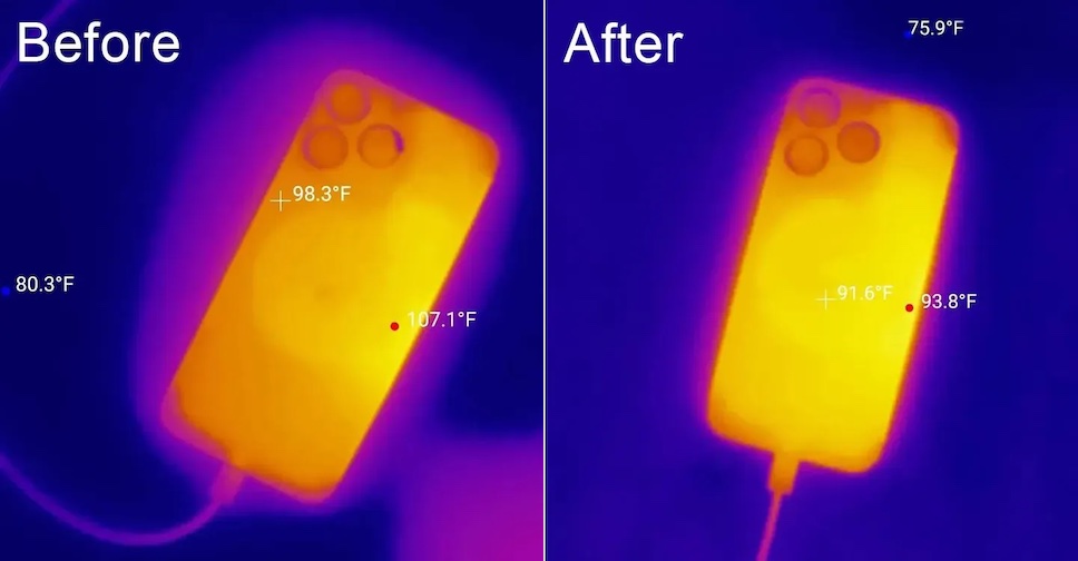 ขณะที่ iPhone 15 Pro เวอร์ชันก่อนหน้านั้น วัดอุณหภูมิได้สูงกว่า 100 องศาฟาเรนไฮต์ ซึ่งหมายความว่า iOS 17.0.3 ทำให้ iPhone 15 Pro เย็นลงกว่าเวอร์ชันก่อน