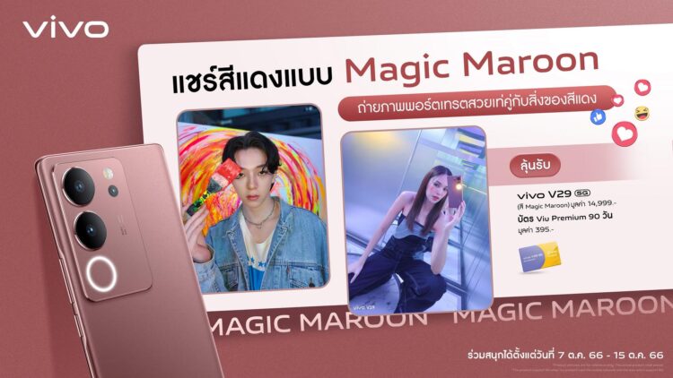 vivo ปล่อยกิจกรรมชวนสายพอร์ตเทรต ‘แชร์สีแดงแบบ Magic Maroon’ลุ้นรับสมาร์ตโฟน V29 5G ตั้งแต่วันนี้ – 15 ตุลาคม 2566