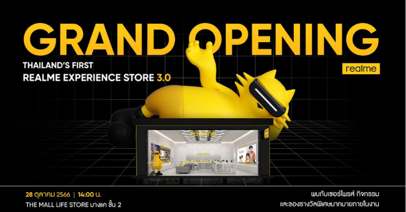 สัมผัสประสบการณ์ความสนุกจากเรียลมีที่ realme Experience Store 3.0 ณ ศูนย์การค้าเดอะมอลล์ บางแค ในวันที่ 28 ตุลาคม 2566 ตั้งแต่เวลา 14.00 น. เป็นต้นไป
