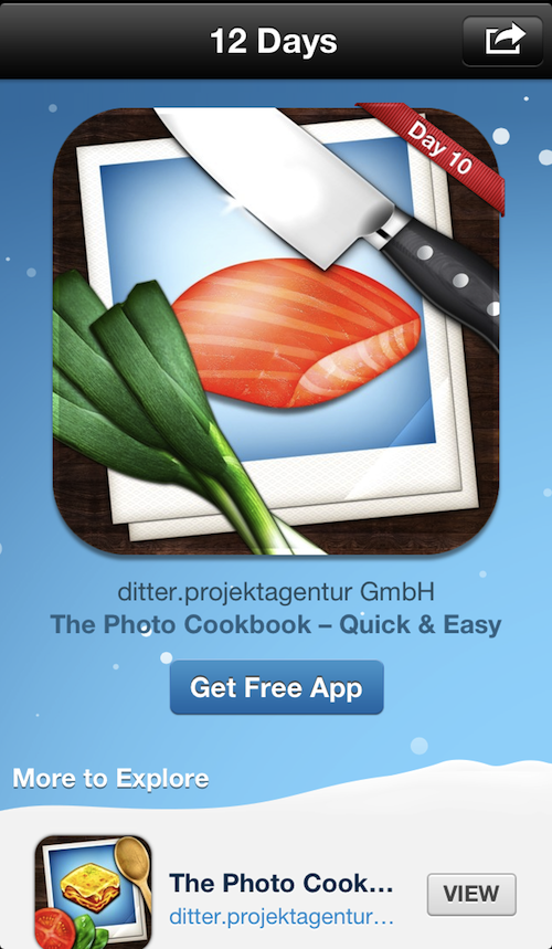เข้าสู่วันที่ 9 แล้วกับ 12 Days of Gifts จาก Apple โดยในวันนี้ได้แจกฟรีแอพตำราสูตรอาหาร The Photo Cookbook สำหรับ iPhone และ iPad โดยตัวแอพจะมีสูตรทำอาหารต่างๆมาให้ได้บรรดาพ่อครัวและแม่ครัวได้ประกอบอาหารได้ง่ายๆด้วยตัวเอง สามารถติดตั้งได้จากแอพ 12 Days of Gifts หรือดาวน์โหลดที่ลิงค์ด้านล่างได้เลย