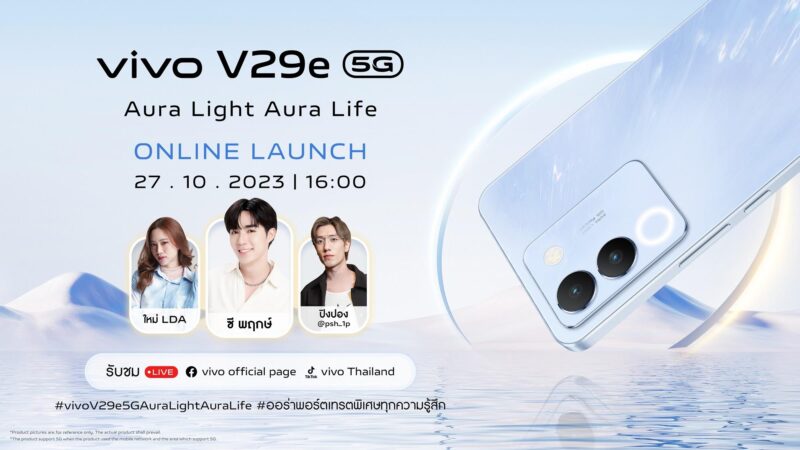 นอกจากนี้ vivo ยังเตรียมความพิเศษให้ vivo fans ทุกท่านได้รับชมในงานเปิดตัวในวันที่ 27 ตุลาคมนี้ นำทีมโดยนักแสดงหนุ่มสุดหล่อ ซี-พฤกษ์ พานิช ไอทีบลอคเกอร์จาก LDA ใหม่-รพีภร สุรวรรณ และตากล้องมากความสามารถ ปิงปอง-อาณกรภูเบศวร์ เฮงสุวรรณ์ ที่จะมาแชร์ประสบการณ์การใช้งาน รวมไปถึงเทคนิคการถ่ายภาพให้ได้ผลลัพธ์สวย ละมุนด้วย vivo V29e 5G