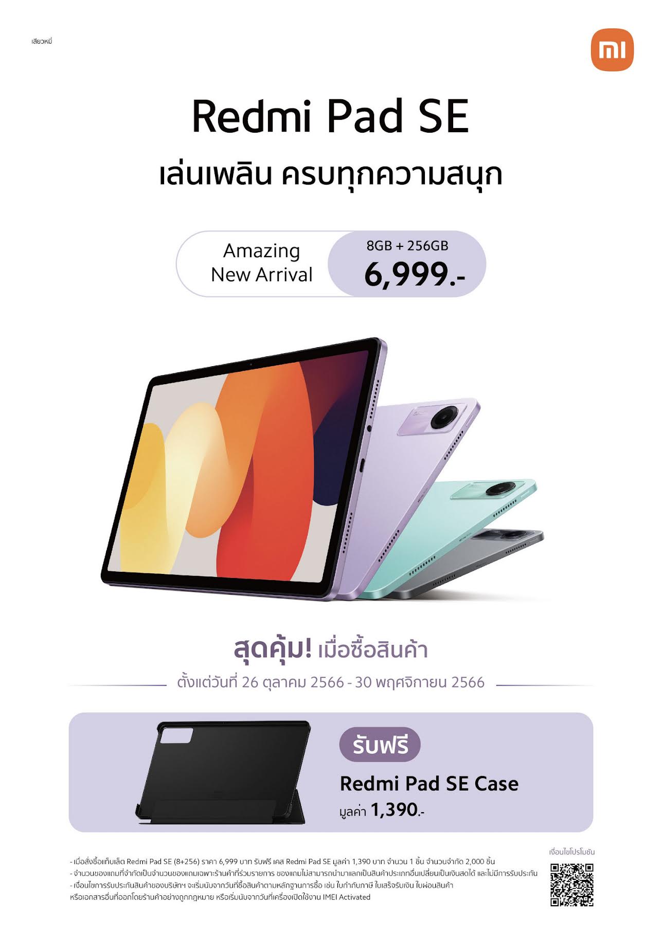 พิเศษ! สำหรับลูกค้าที่ซื้อ Redmi Pad SE รุ่นความจุ 8GB+256GB ในระหว่างวันที่ 26 ตุลาคม 2566 – 30 พฤศจิกายน 2566 รับฟรี! Redmi Pad SE Case มูลค่า 1,390 บาท!