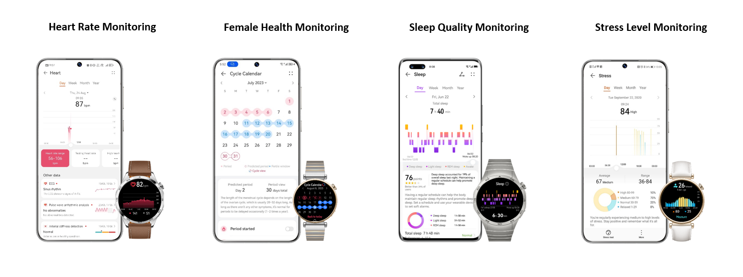 นอกจากนี้ล่าสุดหัวเว่ยได้เปิดตัว HUAWEI Health Lab แห่งใหม่ในเมืองเฮลซิงกิ ประเทศฟินแลนด์ ห้องปฏิบัติการที่ติดตั้งอุปกรณ์ทดสอบล้ำสมัยทำหน้าที่เป็นแพลตฟอร์มการวิจัยด้านสุขภาพและการออกกำลังกายของหัวเว่ย โดย HUAWEI Health Lab แห่งนี้มีขนาดเกือบ 1,000 ตารางเมตร มีอุปกรณ์กีฬาระดับโลกหลากหลายประเภท ครอบคลุมกีฬามากกว่า 20 ประเภท แต่ละพื้นที่จะจัดแสดงอัลกอริธึมกีฬาและการออกกำลังกายในแอปพลิเคชัน มีการสร้างสภาพแวดล้อมและสถานการณ์การเล่นกีฬาที่สมจริงในพื้นที่ทดสอบหลัก 5 แห่ง ซึ่งครอบคลุมกีฬามากกว่า 20 ประเภท และติดตามตัวบ่งชี้ทางสรีรวิทยาและชีวกลศาสตร์มากกว่า 200 รายการ นอกจากนี้ผู้เข้าร่วมยังสามารถใส่ HUAWEI WATCH GT 4 เพื่อทดสอบในพื้นที่หลัก 5 แห่ง ได้แก่ สระว่ายน้ำทวนกระแส เครื่องจำลองการเล่นสกี ลู่วิ่งอเนกประสงค์ ลู่วิ่งไฟฟ้า และพื้นที่ออกกำลังกายแบบเปิด ประกอบด้วยการออกกำลังกายแบบคาร์ดิโอต่างๆอีกด้วย