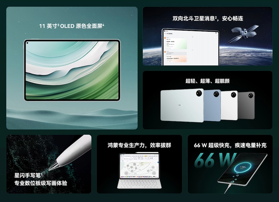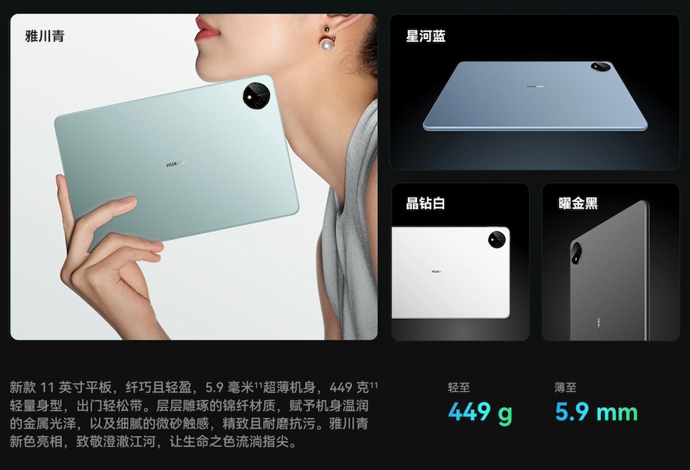 HUAWEI เปิดตัวแท็บเล็ตรุ่นใหม่ MatePad Pro 11” (2024) มาพร้อมจอแสดงผล OLED ความละเอียด 1600 x 2560 พิกเซล ขนาด 11 นิ้ว อัตราส่วนภาพ 16:10 ความสว่างสูงสุด 600 นิต กรอบตัวเครื่องใช้วัสดุอะลูมิเนียม ดีไซน์บางเพียง 5.9 มิลลิเมตร และติดตั้งลำโพงมาให้ 6 ตัว