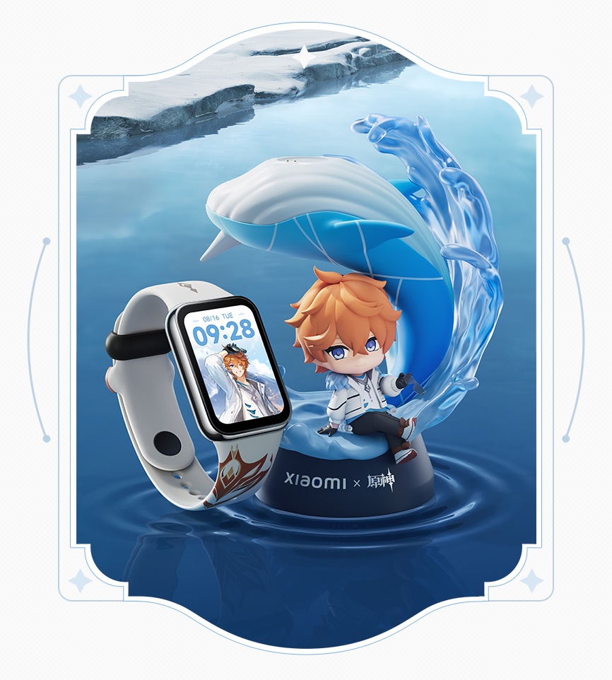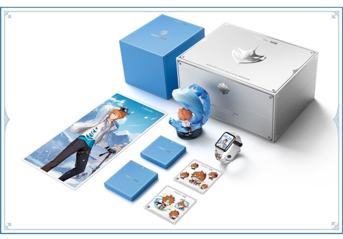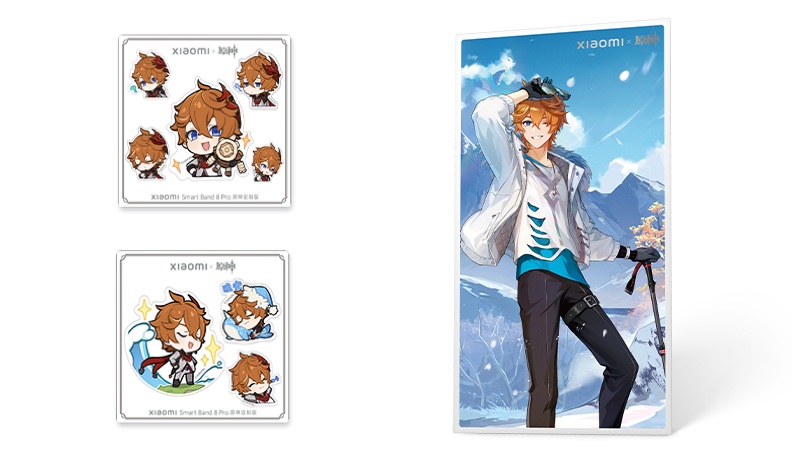 Xiaomi Band 8 Pro Genshin Impact Gift Box มีความพิเศษตั้งแต่บรรจุภัณฑ์ด้วยกล่องที่สร้างขึ้นตามธีมของวิดีโอเกม Genshin Impact ภายในมีของสะสมเป็นโปสเตอร์และสติกเกอร์ของ Tartaglia และที่น่าสนใจที่สุดคือแท่นชาร์จไร้สายที่มี Tartaglia นั่งอยู่