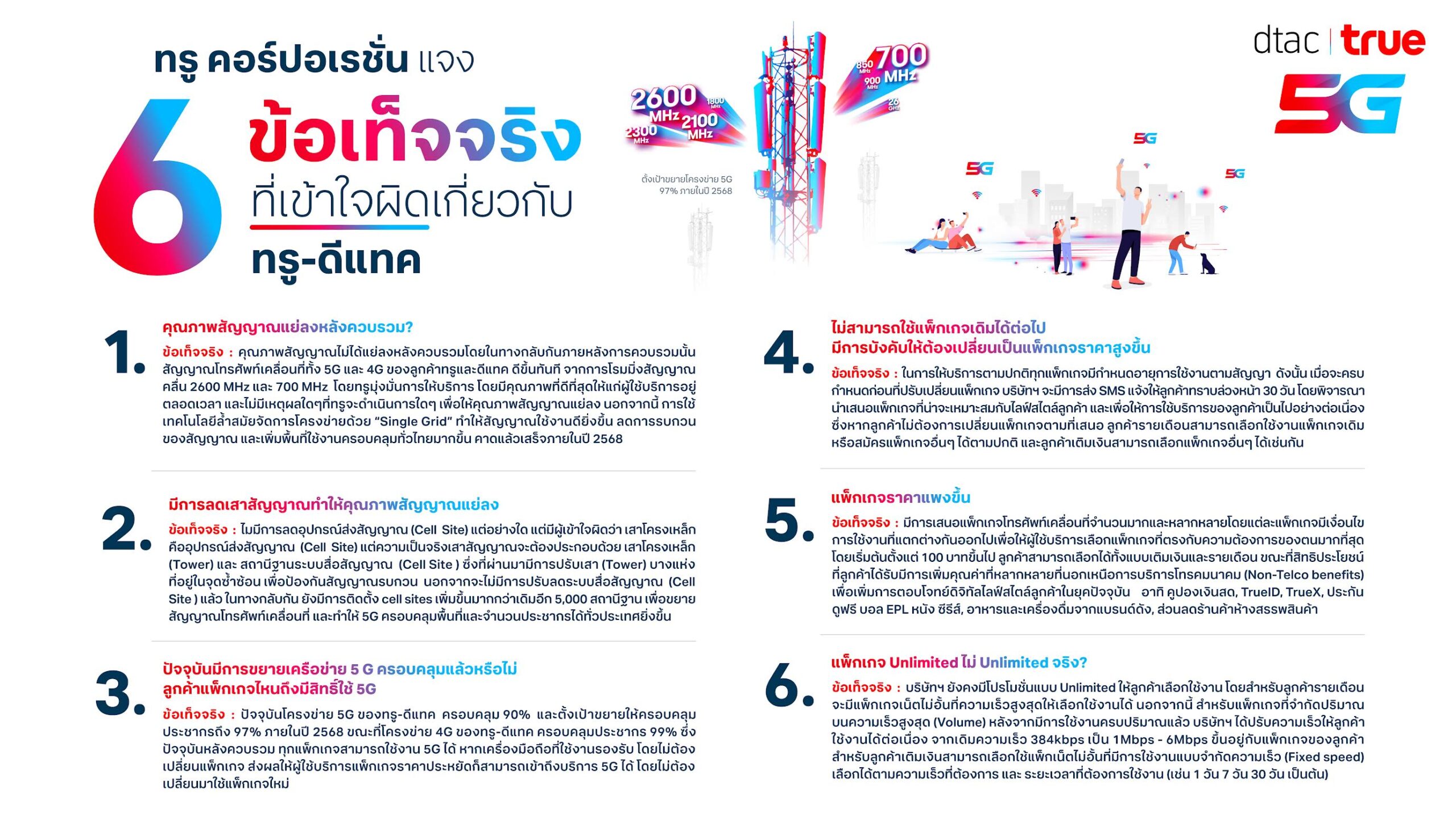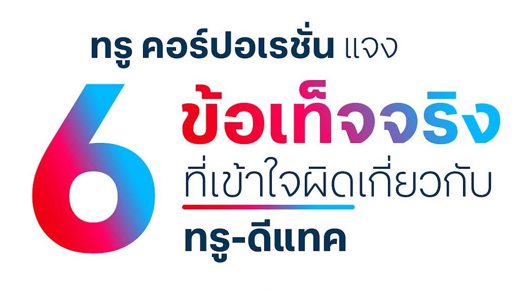 ทรู คอร์ปอเรชั่นแจง 6 ข้อเท็จจริง ที่เข้าใจผิดเกี่ยวกับทรู-ดีแทค