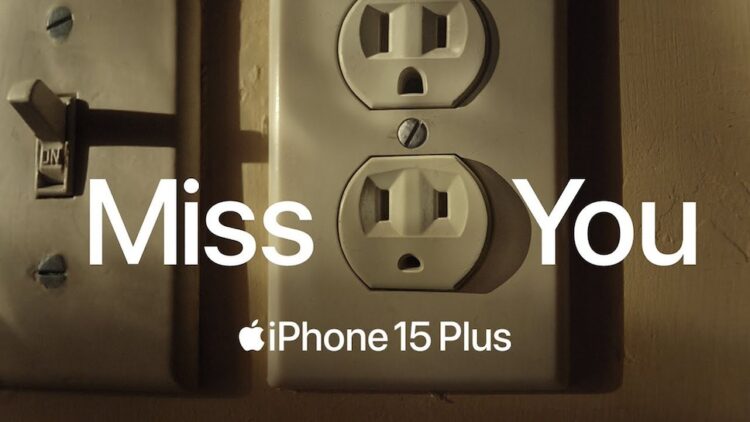 Apple ปล่อยโฆษณาสำหรับ iPhone 15 Plus โดยเฉพาะ เพื่ออวดว่ามีอายุการใช้งานแบตเตอรี่ที่ยาวนาน จนทำให้ปลั๊กไฟที่ผนังร้องคร่ำครวญออกมาเป็นเพลง Way Too Long ของ Doe Boy เพื่อสื่อว่าคิดถึงที่ชาร์จของ iPhone 15 Plus ตามชื่อโฆษณา Miss You