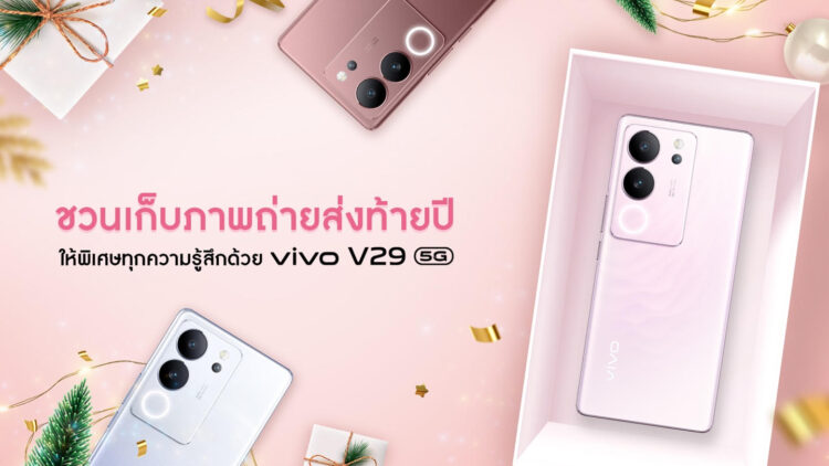vivo แบรนด์สมาร์ตโฟนชั้นนำระดับโลก เตรียมส่งท้ายปีเก่าต้อนรับปีใหม่ ชวนแฟน ๆ ชาวไทยมาร่วมเนรมิตช่วงเวลาแห่งความสุขให้พิเศษกว่าที่เคยด้วย V29 5G สมาร์ตโฟนตัวท็อปสำหรับสายพอร์ตเทรต โดดเด่นด้วยฟีเจอร์และเทคโนโลยีการถ่ายภาพเหนือระดับ ให้ผู้ใช้งานได้บันทึกทุกรายละเอียดของโมเมนต์สำคัญได้อย่างสวยงามเป็นธรรมชาติ พร้อมส่งมอบความสุขให้แฟน ๆ vivo ด้วยการส่งโปรโมชันพิเศษให้ผู้ที่สนใจสามารถเป็นเจ้าของ V29 5G ได้ในราคาที่จับต้องได้ยิ่งขึ้น พร้อมรับของขวัญส่งท้ายปีจาก vivo อีกเพียบ!