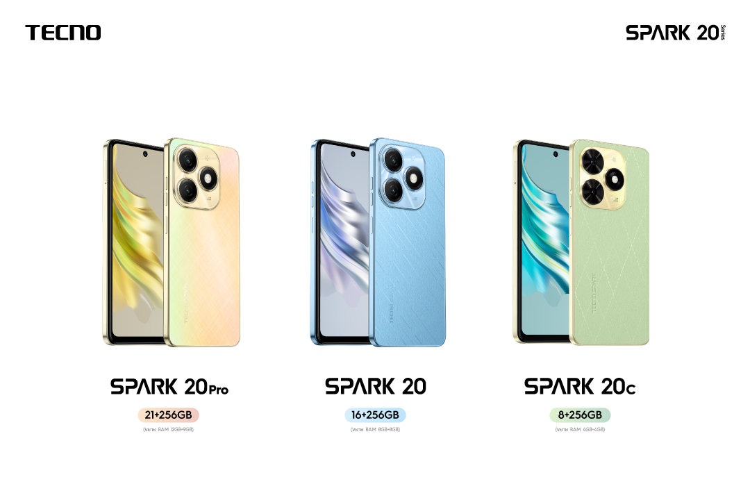 - SPARK 20C เป็นรุ่นเดียวที่ราคาต่ำกว่า 3,000 บาท มาพร้อม RAM/ROM 8GB+256GB