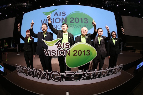 เอไอเอส ผนึกกำลังพันธมิตรทางธุรกิจ ประกาศวิสัยทัศน์ AIS Vision 2013 Moving Forward ยกปี 2013 เป็นปีแห่งการก้าวกระโดดไปข้างหน้าของทุกอุตสาหกรรมจากผลของการพัฒนาโครงสร้างพื้นฐานด้านสื่อสารโทรคมนาคมด้วยการเริ่มต้นของเทคโนโลยี 3G 2100 MHz เต็มรูปแบบ สร้างโอกาสทางการแข่งขัน เสริมแกร่งประเทศไทย