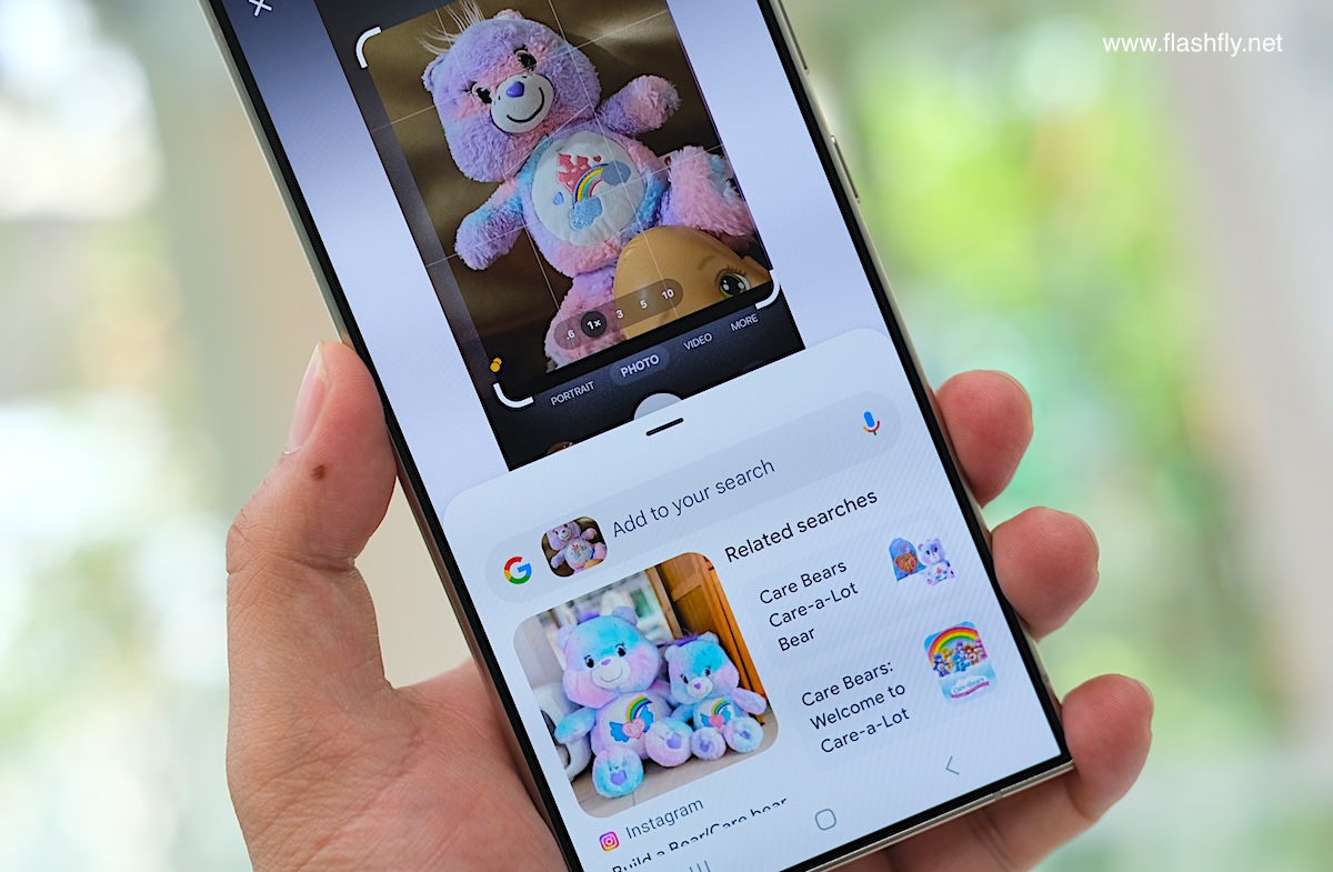Circle to Search ช่วยในการค้นหาสิ่งที่ต้องการระหว่างเลื่อนดูคอนเท้นต์ต่างๆ ให้กดปุ่ม Home ค้างไว้แล้วใช้ปลายนิ้วหรือปากกา S Pen วาดวงกลมล้อมรอบวัตถุสิ่งของที่ต้องการทราบข้อมูลเพิ่มเติม ผลการค้นหาก็จะปรากฏขึ้นบน Google ไม่ว่าจะเป็น เสื้อผ้า เครื่องแต่งกาย ร้านอาหาร ต้นไม้