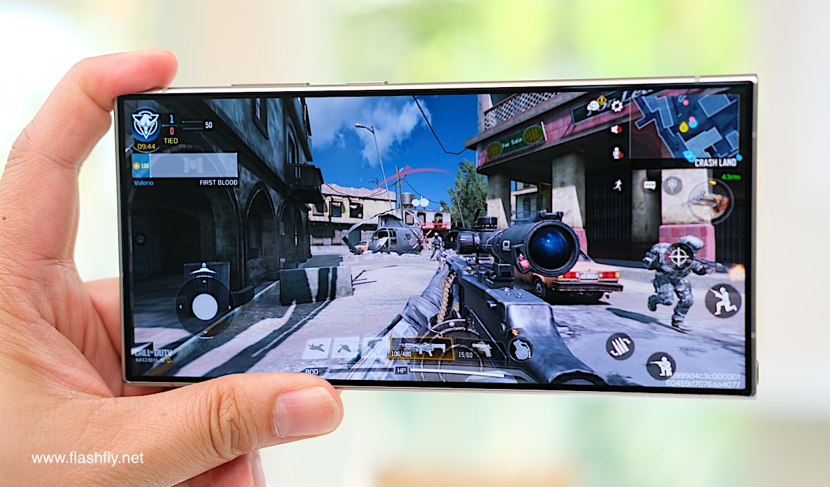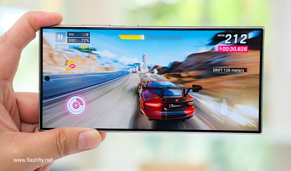 GPU ของชิปประมวลผล Snapdragon 8 Gen 3 for Galaxy ยังตอบสนองการเล่นเกมระบบ AAA ได้อย่างลื่นไหล และให้กราฟิกสมจริงด้วยการปรับปรุง Ray Tracing นอกจากนี้ ระบบระบายความร้อนภายในตัวเครื่อง Galaxy S24 Ultra ยังได้รับการขยายขนาด Vapor Chamber ให้ใหญ่ขึ้นเกือบเท่าตัว จึงรักษาประสิทธิภาพในระดับสูงในระหว่างการเล่นเกมที่ยาวนาน