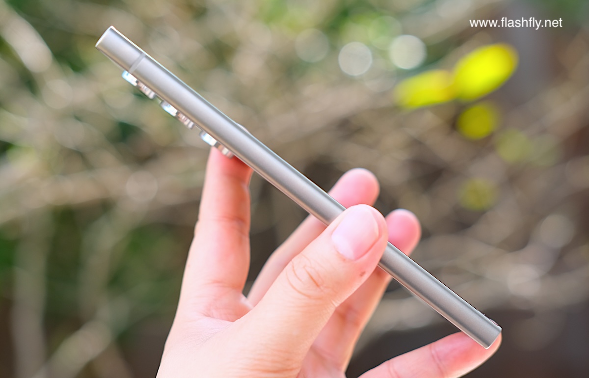 ขอบด้านข้างมีความบาง 8.6 มิลลิเมตร และมีดีไซน์โค้งมน ช่วยให้จับถือได้สบายมือ