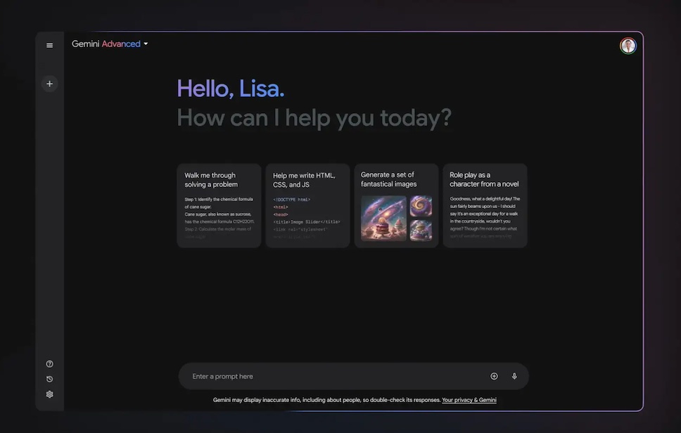 นอกจากนี้ Google ยังแนะนำ Gemini Advanced ที่ขับเคลื่อนโดย Gemini Ultra 1.0 ซึ่งมีความสามารถมากกว่า Gemini Pro 1.0 รองรับการทำงานที่ซับซ้อน ไม่ว่าจะเป็นครูพิเศษ ช่วยสร้างแบบทดสอบได้ มีเซสชันการเขียนโค้ดขั้นสูง ประเมินแนวทางการเขียนโค้ดแบบต่างๆ
