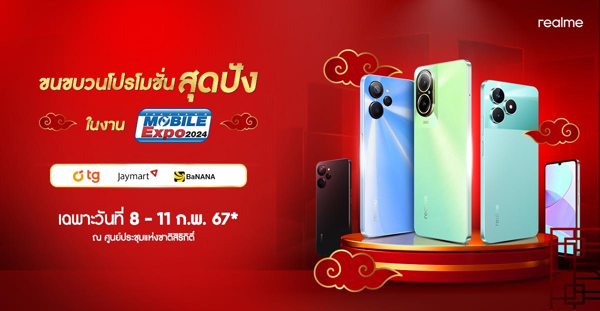 - TG: ซื้อ realme C51 (4+128GB) ที่บูธ TG รับ Special Promotion พิเศษสุดเฉพาะในงาน / realme 10T 5G (8+256GB) รับส่วนลดสูงสุด 3,500 บาท