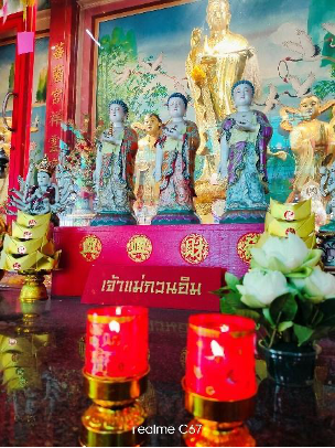 ไปต่อกันที่ศาลเจ้าชื่อดังใกล้ ๆ กันอย่างศาลเจ้าแม่กวนอิม มูลนิธิเทียนฟ้า โดดเด่นด้วยปฏิมากรรมเจ้าแม่กวนอิมพระโพธิสัตว์อวโลกิเตศวรปางประทานพร เชื่อกันว่าไหว้ขอพรเรื่องสุขภาพและปัดเป่าโรคภัยแล้วจะได้สมความปรารถนา วัดนี้ดูเหมือนถ่ายรูปไม่ยากเพราะมีไฮไลต์คือองค์กวนอิมเพียงจุดเดียว แต่ด้วยโทนสีทองขององค์พระโพธิสัตว์ที่ต้องแสงไฟเจิดจ้า อาจทำให้ภาพดูสว่างโพลนเกินไปหากเซ็นเซอร์กล้องไม่ดีพอ แต่ไม่ต้องเป็นห่วงเพราะ realme C67 มาพร้อมเซ็นเซอร์ระดับเรือธงอย่าง Samsung S5KHM6 ขนาด 1.67 นิ้ว ซึ่งนอกจะรองรับการซูมแบบ Lossless สูงสุดถึง 3 เท่า ยังวัดสีและแสงได้อย่างแม่นยำ ให้คุณถ่ายภาพพระพักตร์ขององค์กวนอิมได้งดงามอย่างที่ตาเห็น