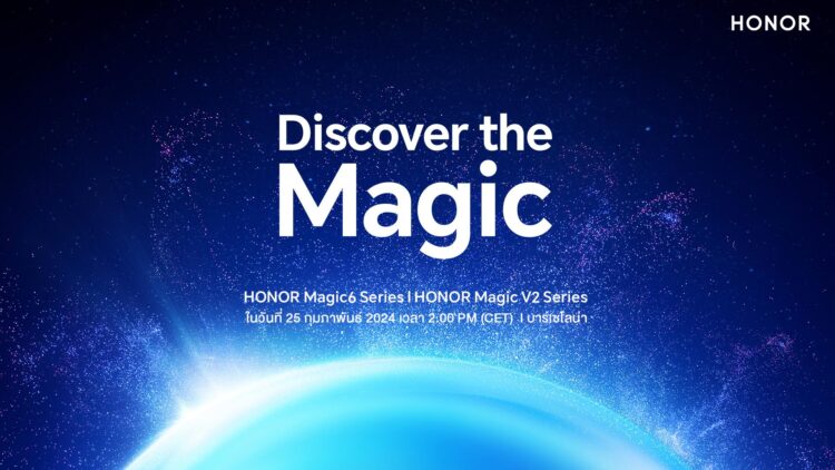 เรือธง HONOR Magic 6 Series และ HONOR Magic V2 RSR ในงาน MWC2024 โดยเป็นการเปิดตัวในฝั่งของ Global ที่เปิดโอกาสให้ทุกคนรับชมพร้อมกันแบบสด ๆ ในวันอาทิตย์ที่ 25 กุมภาพันธ์ 2567 เวลา 20.00 น. เป็นต้นไป ตามเวลาประเทศไทย สามารถรับชมได้ผ่านทางเว็บไซต์ www.hihonor.com/th/events/honor-mwc