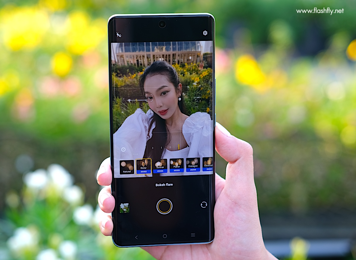 โหมด Portrait ของกล้องหน้ายังมีเอฟเฟกต์ Bokeh flare จาก ZEISS ให้ใช้งานเช่นเดียวกับกล้องหลัง ได้แก่ Biotar, Sonnar, Planar, Distagon และ Cinematic โหมด Night ของกล้องหน้าไม่มี Filter แบบกล้องหลัง แต่มีฟีเจอร์ Beauty ช่วยทำให้ใบหน้าดูดีขึ้น และยังมี Aura screen light สามารถเปลี่ยนหน้าจอให้กลายเป็นแสงไฟออร่าในการถ่ายเซลฟี่ในที่แสงน้อย แถมยังสามารถปรับอุณหภูมิแสงเป็นโทนอุ่นหรือโทนเย็นได้แบบกล้องหลังอีกด้วย