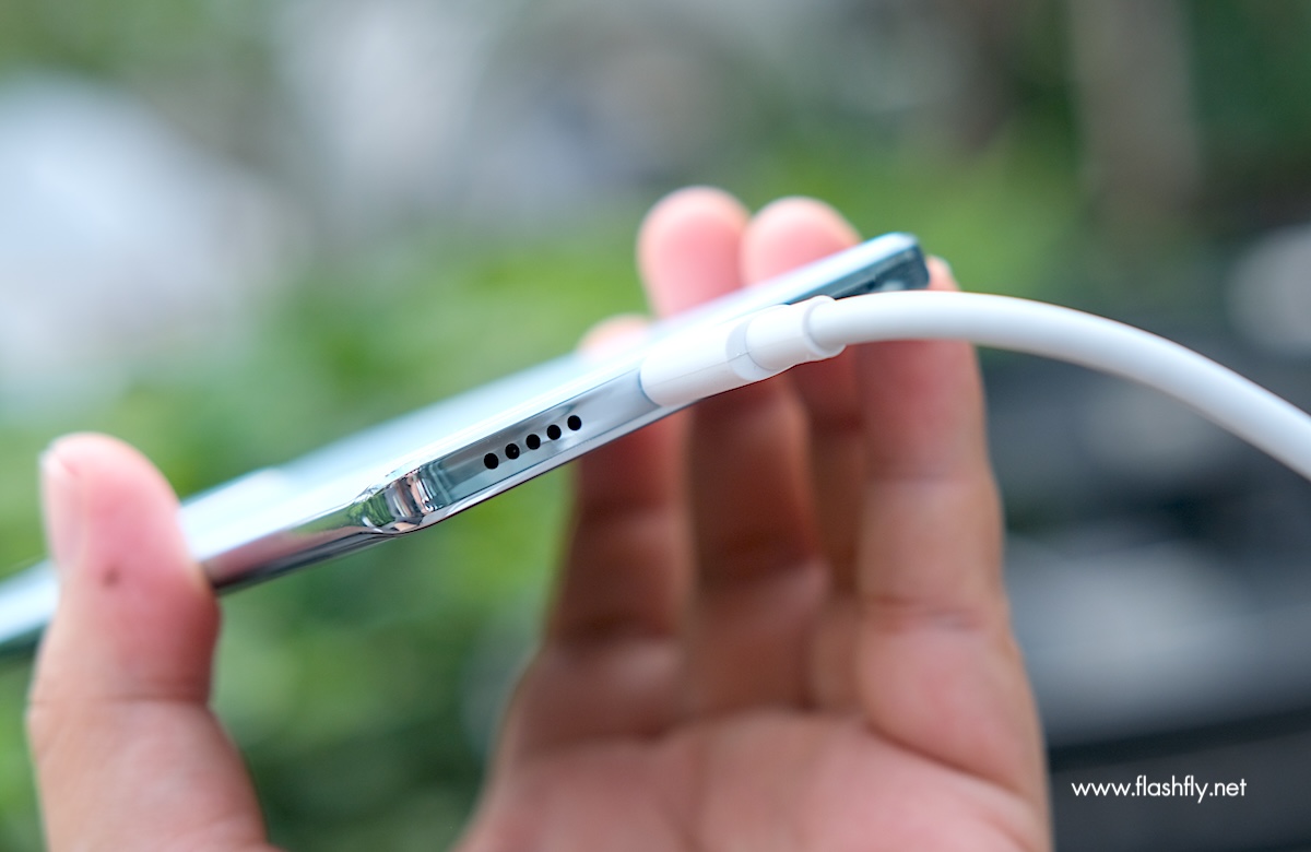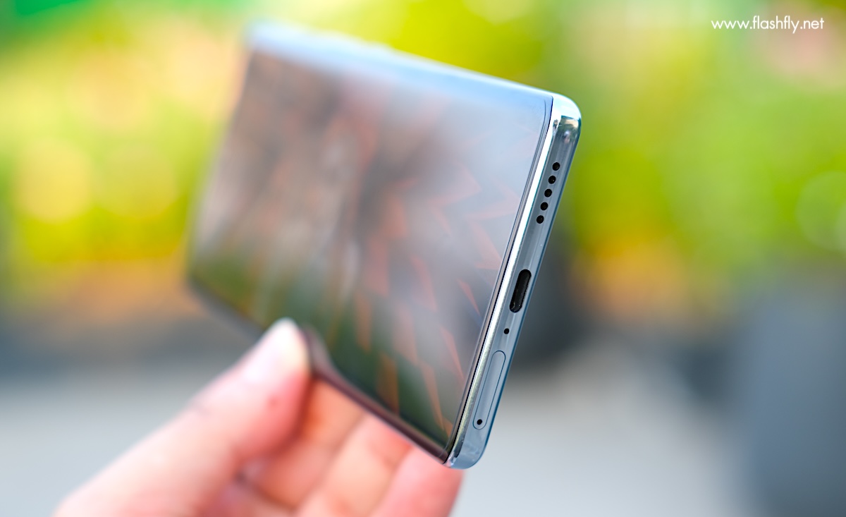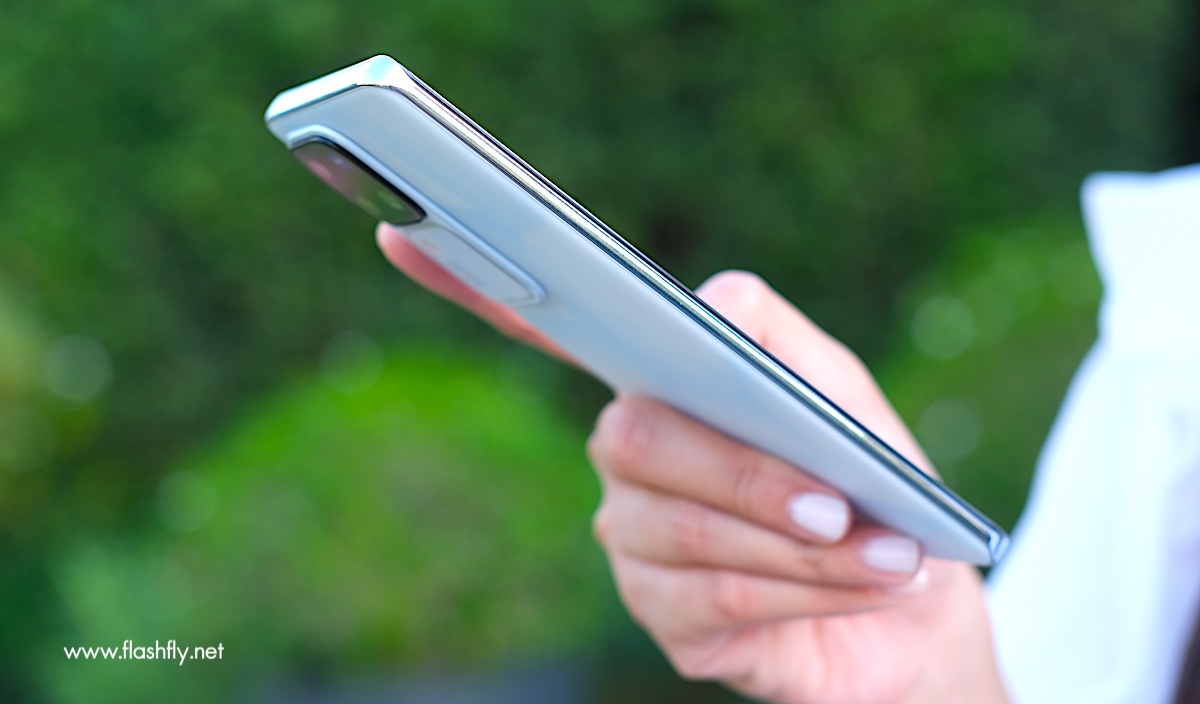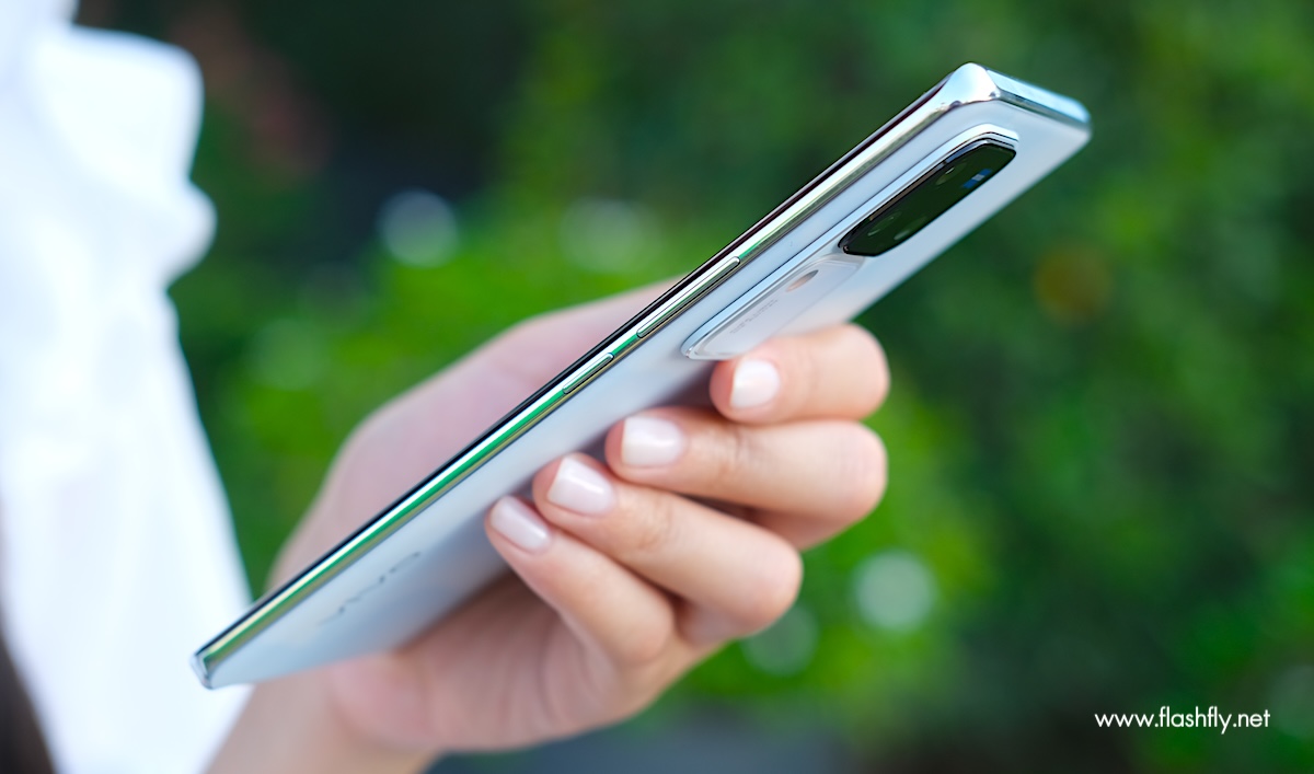 ส่วนขอบด้านข้าง มีความบางเพียง 7.45 มิลลิเมตร เผยให้เห็นส่วนขอบมุมโค้งมนของฝาหลังกับแผงหน้าจอ มาบรรจบกันตรงกรอบตัวเครื่องแบบโครเมียม โดยมีน้ำหนัก 188 กรัม ให้ความสบายในการถือใช้งาน