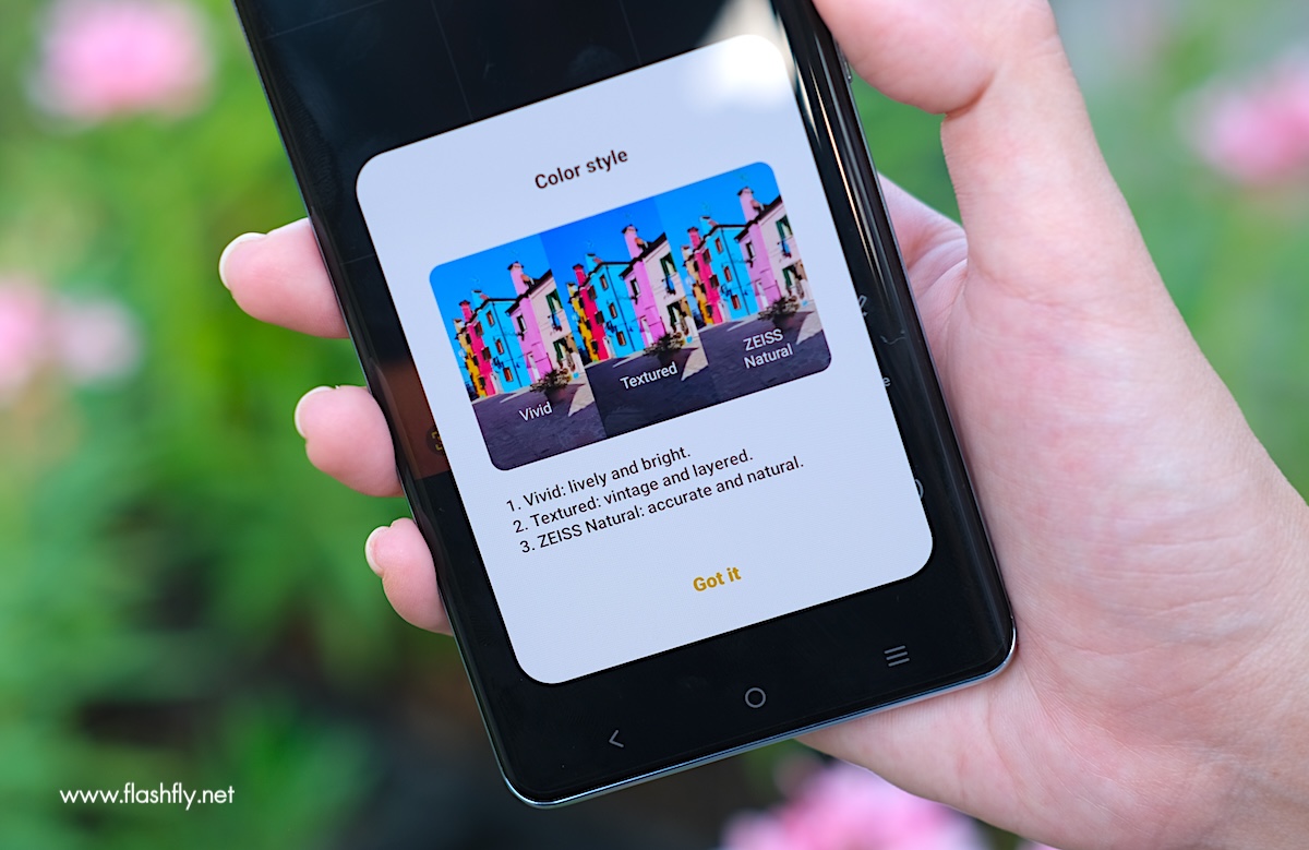 โหมด Photo มาพร้อมฟิลเตอร์ ZEISS Natural Color สามารถเปิดใช้งานได้จากแถบเครื่องมือด้านบน ช่วยทำให้ภาพถ่ายมีสีสันที่เป็นธรรมชาติแบบฉบับเลนส์ ZEISS ส่วนการซูม สามารถซูมได้ตั้งแต่ระยะ 0.6x (เป็นการเปิดใช้งานกล้อง Ultra Wide) 1x ,2x ,4x จนสูงสุด 20x