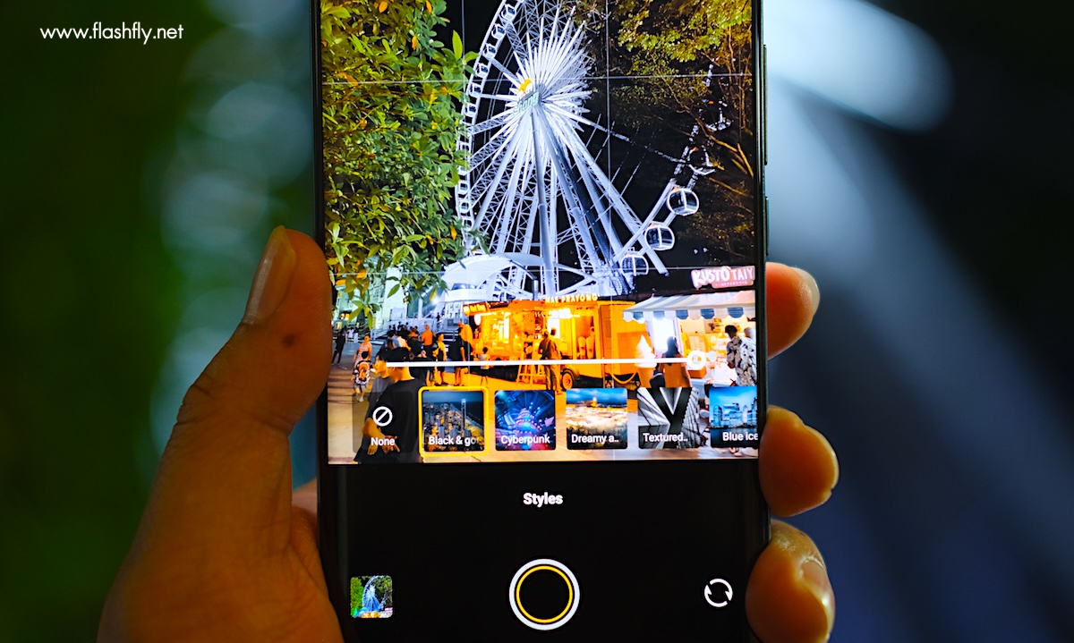 โหมด Night สามารถซูมได้ตั้งแต่ระยะ 0.6x จนสูงสุด 20x โดยมี Style หรือ Filter ให้เลือกใช้หลายแบบ แต่ละแบบช่วยปรับโทนสีภาพให้เหมาะสำหรับการถ่ายภาพยามค่ำคืนในฉากหรือสถานการณ์ที่หลากหลาย