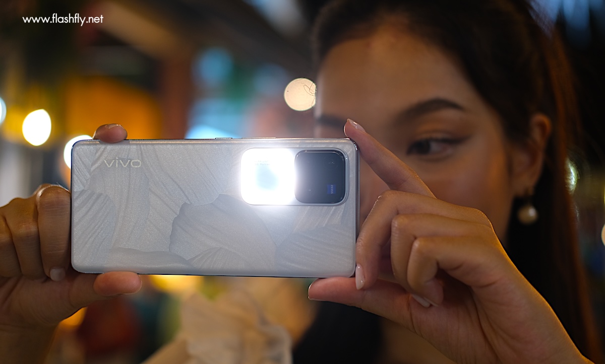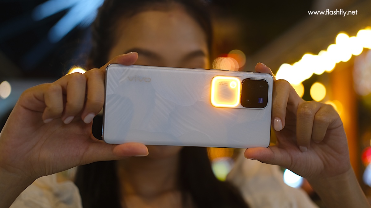 vivo V30 Pro 5G ยังได้รับการปรับปรุงระบบแสงออร่าให้ดีขึ้นด้วย Aura Light Portrait 3.0 มาในดีไซน์เหลี่ยม ติดตั้งไว้ใต้โมดูลกล้องหลัง เมื่อเทียบกับรุ่นก่อน จะพบว่า Aura Light Portrait 3.0 มีขนาดออร่าใหญ่ขึ้น 19 เท่า และให้แสงที่นุ่มนวลขึ้นถึง 50 เท่า จึงให้แสงสว่างที่เหมาะสมและนุ่มนวลยิ่งขึ้น ช่วยให้ใบหน้ามีดูสว่างและละมุนอย่างเป็นธรรมชาติ