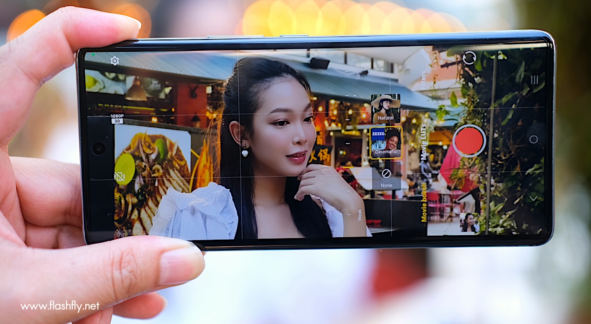โหมด Video สามารถซูมได้ตั้งแต่ระยะ 0.6x จนสูงสุด 10x รองรับการถ่ายวิดีโอสูงสุด 4K ที่อัตรา 60 เฟรมต่อวินาที รองรับฟีเจอร์ Movie LUTs / Filter ซึ่งเป็นเครื่องมือช่วยปรับแต่งโทนภาพของวิดีโอในแบบที่ผู้ใช้งานต้องการ และที่น่าสนใจก็คือฟีเจอร์ Movie Bokeh ที่มีเอฟเฟกต์ Cinematic จาก ZEISS สามารถละลายฉากหลังได้อย่างสวยงาม เลื่อนปรับความเบลอได้ตามต้องการ