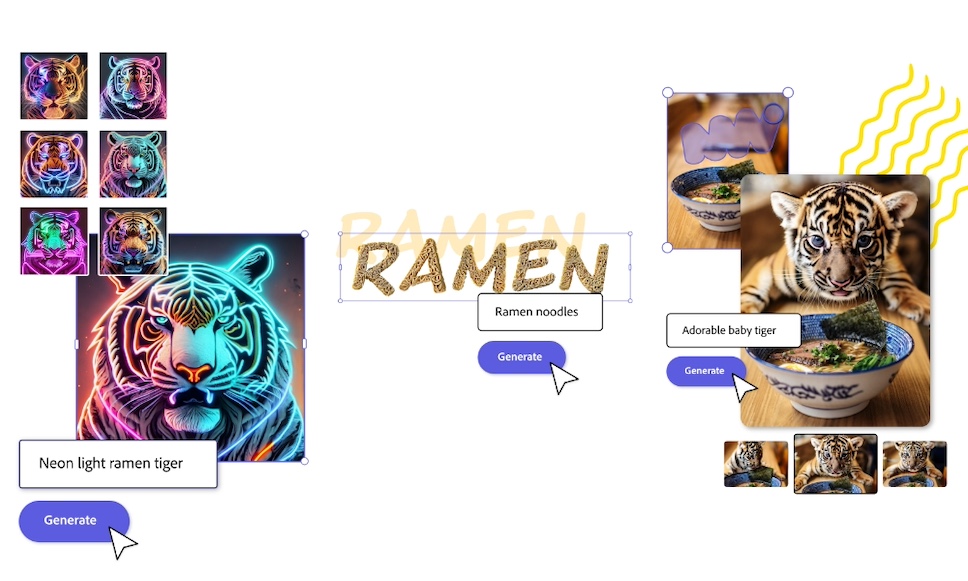 Adobe Express เป็นแอปพลิเคชันแรกของ Adobe ที่ได้รับเทคโนโลยี AI จาก Firefly ซึ่งมีความสามารถเหมือนกับฟีเจอร์ Generative Fill บน Photoshop