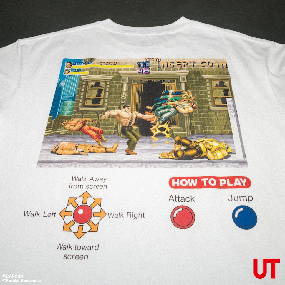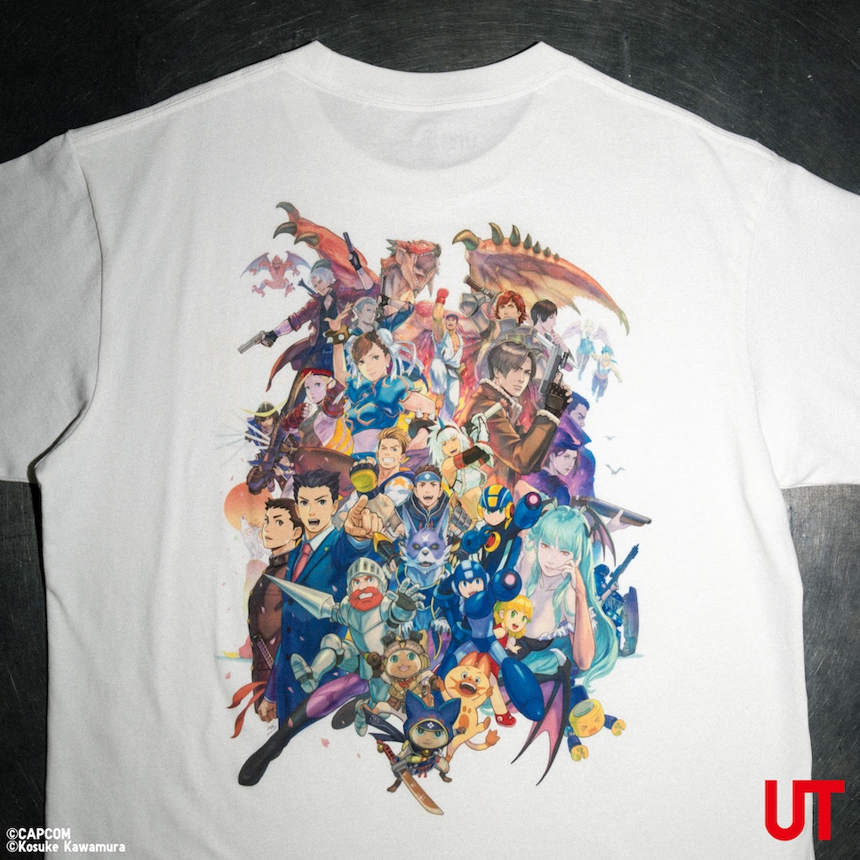 เสื้อยืด UT คอลเลคชันสุดพิเศษ ฉลองครบรอบ 40 ปี Capcom ได้รวบรวมผลงานเกมมาสเตอร์พีซระดับตำนานมากถึง 7 เกม อย่าง Ghosts’n Goblins, Mega Man, Final Fight, Street Fighter II, Devil May Cry, Monster Hunter และ Resident Evil RE:4 สร้างสรรค์โดย Kosuke Kawamura ครีเอทีฟไดเรคเตอร์ของ UT
