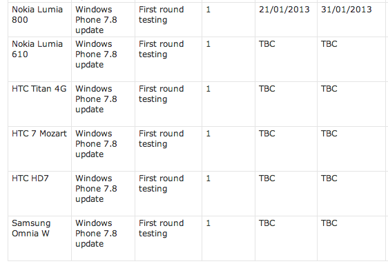ข่าวนี้ถือเป็นข่างดีของกลุ่มผู้ที่ใช้งาน Nokia Lumia รุ่นแรกอย่าง Lumia 900 หรือ Lumia 800 ที่จะได้เวลาอัพเกรดจาก Windows Phone 7.5 เป็น Windows Phone 7.8 กันเสียที โดยข้อมูลนี้มาจาก Facebook ของ Windows Phone ประเทศโคลัมเบีย ได้ให้ข้อมูลว่า Windows Phone 7.5 บางรุ่นจะได้อัพเป็น Windows Phone 7.8 ได้ตั้งแต่วันที่ 31 มกราคมนี้เป็นต้นไป และครบทุกรุ่นภายในไตรมาสแรกของปีนี้