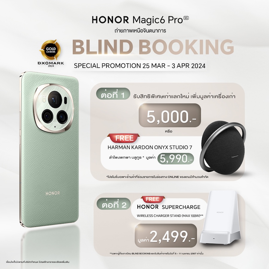 - ต่อที่ 2: รับฟรี! HONOR SuperCharge Wireless Charger Stand มูลค่า 2,499 บาท