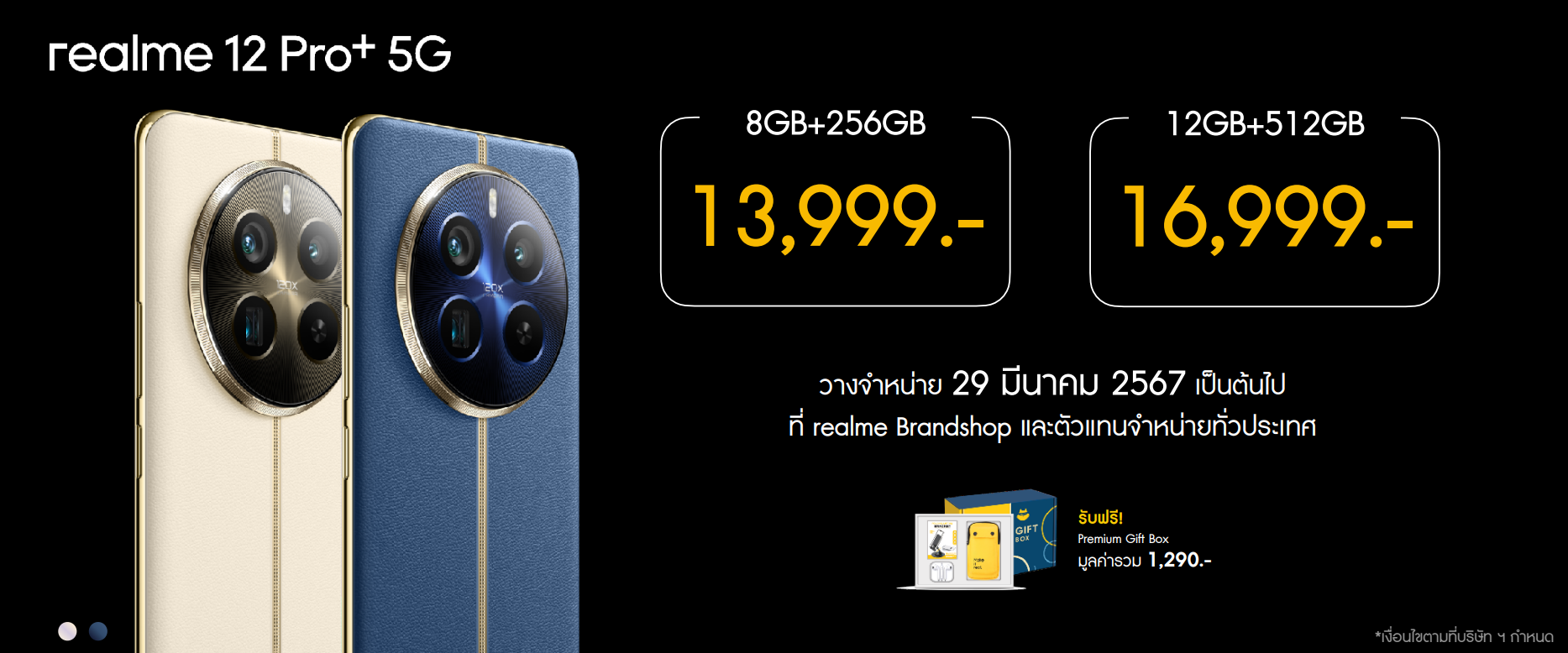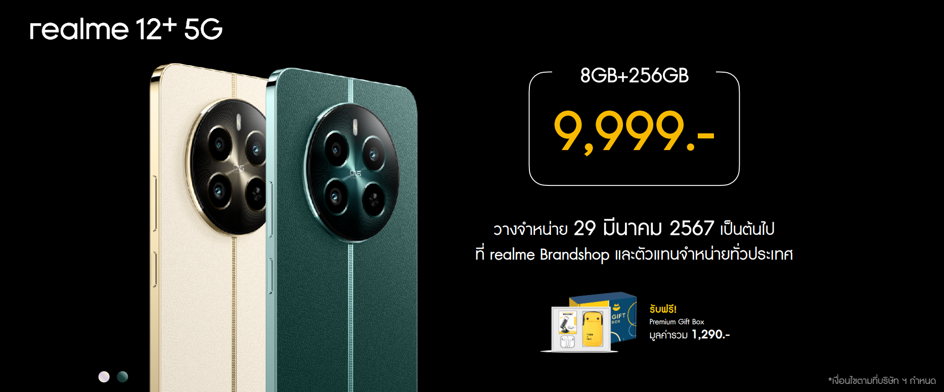 realme (เรียลมี) แบรนด์สมาร์ตโฟนเพื่อคนรุ่นใหม่ที่เติบโตเร็วที่สุดในโลก เปิดตัวสมาร์ตโฟนใหม่ล่าสุดตระกูล Number Series ที่ทุกคนรอคอยกับ “realme 12Pro+ 5G และ realme 12+ 5G” โดยทั้งสองรุ่นผสานเทคโนโลยีการถ่ายภาพระดับแฟล็กชิปเข้ากับการออกแบบตัวเครื่องที่หรูหรา พร้อมประสิทธิภาพการใช้งานที่เหนือกว่าทุกแบรนด์ในระดับราคาเดียวกัน ชูไฮไลต์รุ่น realme 12Pro+ 5G ที่มาพร้อมเทคโนโลยีกล้องซูมเพอริสโคปครั้งแรกและหนึ่งเดียวในเซกเมนต์ และ realme 12+ 5G ที่รองรับเทคโนโลยี OIS ครั้งแรกและหนึ่งเดียวในเซกเมนต์ เพื่อก้าวข้ามขีดจำกัดของสมาร์ตโฟนระดับกลางสู่การเป็น Portrait Master อย่างสมบูรณ์แบบ พร้อมเปิดให้เป็นเจ้าของล่วงหน้าวันที่ 21 มีนาคม โดยเปิดราคาจำหน่ายในไทยเริ่มต้นที่ 9,999 บาท