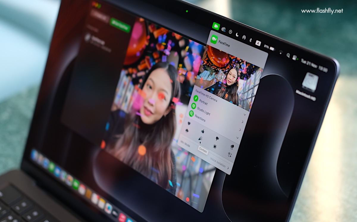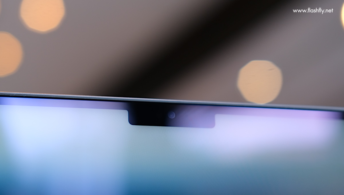 เมื่อเปิดฝา MacBook Pro ขึ้นมา จะพบกับจอภาพ Liquid Retina XDR ขนาด 14.2 นิ้ว ที่มีขอบจอด้านข้างบางเป็นพิเศษ ส่วนขอบบนพบรอยบาก ซึ่งมีการซ่อนกล้อง FaceTime HD ไว้ตรงกึ่งกลาง โดยมีความละเอียด 1080p ทำงานร่วมกับโปรเซสเซอร์รับสัญญาณภาพ และการประมวลผลวิดีโอด้วยคอมพิวเตอร์ เพื่อให้ประสบการณ์ที่ดีเยี่ยมสำหรับการโทรแบบวิดีโอหรือประชุมออนไลน์
