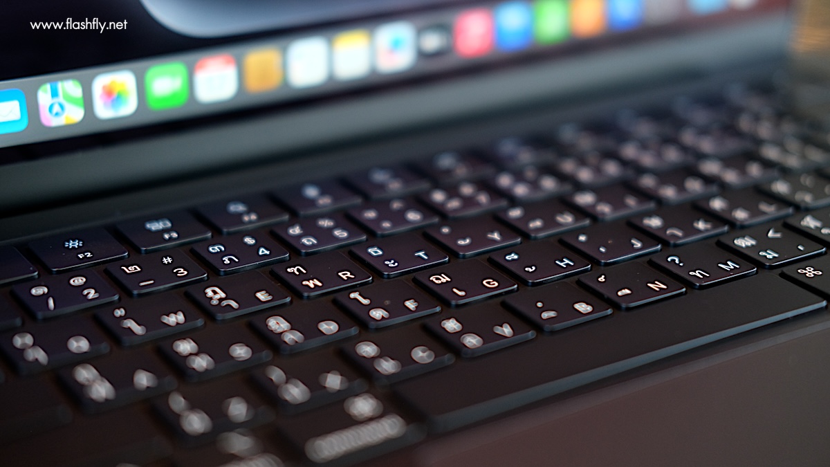 Magic Keyboard ใช้ปุ่มสีดำที่เข้มกว่าสีดำของตัวเครื่อง มีแบ็คไลท์ปรับระดับความสว่างได้ สามารถปรับความสว่างได้อัตโนมัติ โดยทำงานร่วมกับเซ็นเซอร์ตรวจวัดแสงโดยรอบ และมาพร้อม Touch ID ถัดจากปุ่ม F12