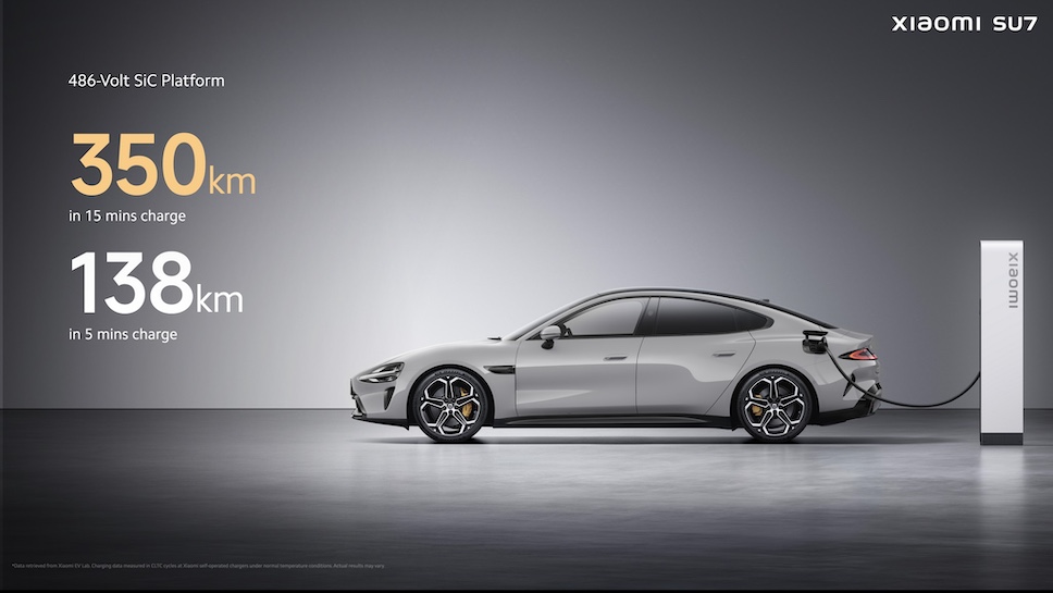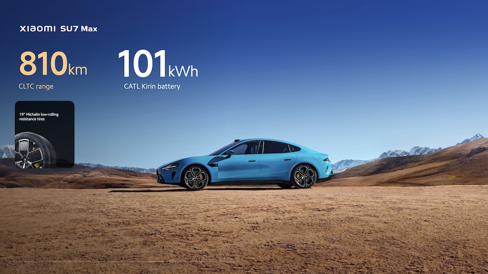 Xiaomi SU7 Max มาพร้อมแบตเตอรี่ CATL Qilin ขนาด 101Wh ให้ระยะทางสูงสุด 800 กม. ตามมาตรฐาน CLTC ชาร์จเพียง 15 นาที สามารถวิ่งได้ไกลถึง 510 กม. สามารถเร่งความเร็วจาก 0-100 กม./ชม. ได้ภายใน 2.78 วินาที ทำความเร็วสูงสุด 265 กม./ชม. ขับเคลื่อน 4 ล้อ (AWD) ด้วยมอเตอร์คู่ให้กำลังรวม 495 กิโลวัตต์ หรือ 663 แรงม้า สร้างแรงบิด 838 นิวตันเมตร