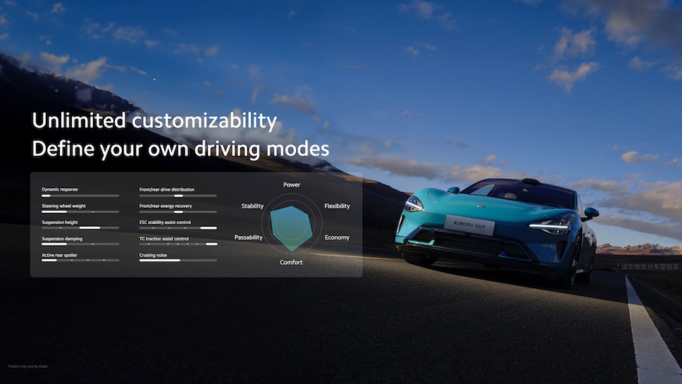 ทั้งนี้ Xiaomi SU7 มีให้เลือก 9 สี ได้แก่ Basalt Gray, Diamond Black, Lava Orange, Meteor Blue, Pearl White, Radiant Purple, Aqua Blue, Mineral Gray และ Verdant Green