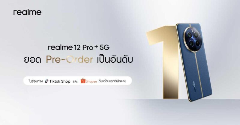 เปิดตัวกันไปแล้วอย่างยิ่งใหญ่กับ “realme 12 Pro+ 5G และ realme 12+ 5G” สมาร์ตโฟนใหม่ล่าสุดในตระกูล Number Series ที่สร้างปรากฏการณ์ซูมเทเลโฟโต้ด้วยเลนส์เพอริสโคปครั้งแรกและหนึ่งเดียวในเซกเมนต์! โดยตอกย้ำความเป็นสมาร์ตโฟนที่โดดเด่นที่สุดในระดับราคาเดียวกันด้วยยอดสั่งจองแบบถล่มทลาย โดยสำหรับรุ่น realme 12Pro+ 5G มียอดสั่งจองเป็นอันดับ 1 ในช่องทาง Tiktok Shop และ Shopee ตั้งแต่วันแรกที่เปิดจองและในรุ่น realme 12+ 5G มียอดสั่งจองเป็นอันดับ 1 ในช่องทาง Tiktok Shop และอันดับ 2 ผ่านช่องทาง Shopee ตั้งแต่วันแรกที่เปิดจอง ไม่เพียงเท่านั้น ยังสร้างปรากฏการณ์ด้วยยอดสั่งจองที่เพิ่มขึ้นถึง 670% เมื่อเทียบกับ realme 11 Pro Series ในช่องทาง Shopee, Lazada, TikTok Shop ตั้งแต่วันแรกที่เปิดจอง และเพื่อตอบรับกระแสเรียกร้องทั้งจากแฟน ๆ เรียลมีและหนุ่มสาวรุ่นใหม่ที่อยากได้มือถือที่ถ่ายภาพได้สวยงามระดับโปร realme Thailand จึงผนึกกำลังกับ 3 เครือข่ายสัญญาณชั้นนำของเมืองไทย ตลอดจนศูนย์จำหน่ายและแพลตฟอร์มออนไลน์ชื่อดัง เปิดพรีออร์เดอร์ “realme 12 Pro+ 5G และ realme 12+ 5G” ในราคาสุดพิเศษ พร้อมจัดโปรโมชันพ่วงส่วนลดกระหน่ำสูงสุดกว่า 4,000 บาท อย่าช้า! รีบไปจับจองเพื่อเป็น Portrait Master กันได้แบบคุ้ม ๆ และรับสินค้ารวมถึงเป็นเจ้าของได้พร้อมกันทั่วประเทศ 29 มีนาคม นี้!