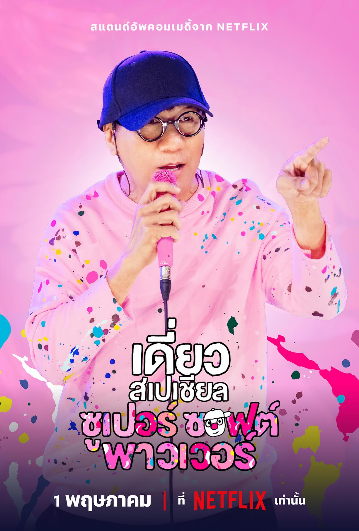 เตรียมตัวให้พร้อม จับจองที่นั่งมุมโปรด  แล้วเปิด ‘เดี่ยว สเปเชียล ซูเปอร์ซอฟต์พาวเวอร์’ ที่ไม่เปิดรอบให้เข้าชมที่ไหน พร้อมกันทุกหน้าจอ 1 พฤษภาคมนี้ ที่ Netflix เท่านั้น! เข้าชมตัวอย่างก่อนระเบิดเสียงหัวเราะพร้อมกันได้ ที่นี่