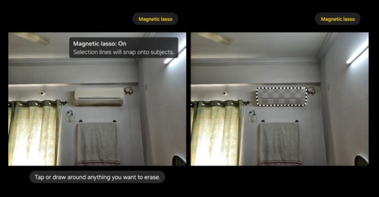 อย่างไรก็ตาม Samsung ได้เพิ่มฟีเจอร์ใหม่ที่เรียกว่า Magnetic Lasso ซึ่งช่วยให้ผู้ใช้งาน Samsung Photo Editor เลือกวัตถุที่ต้องการลบได้แม่นยำมากขึ้น